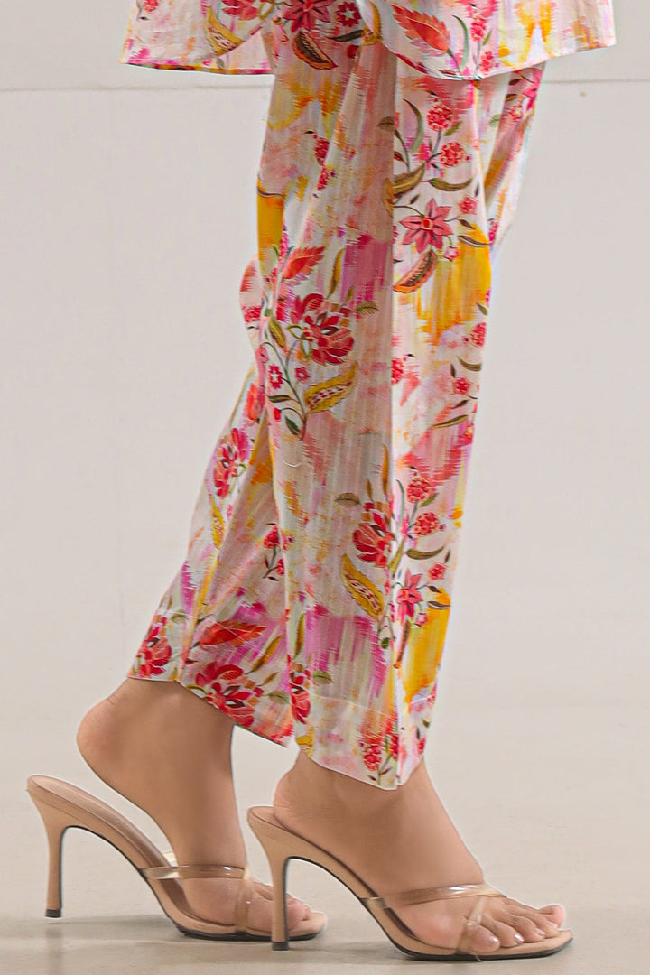 Printed Cambric Pants By SAYA Crafted From Ultra-Soft Cambric Fabric That Offers Breathability, Lightweight Comfort, And A Smooth Fall. The Pink Base With Subtle Print Accents Brings A Feminine, Elegant Vibe — Ideal For Brunches, Day Events, Or Casual Gatherings. Skillfully Tailored With Clean Seams, A Comfortable Waistband, And A Durable Finish To Ensure Longevity. A Versatile Pant That Elevates Simple Tops, Lawn Shirts, Or Tunics With Poise And Grace.
