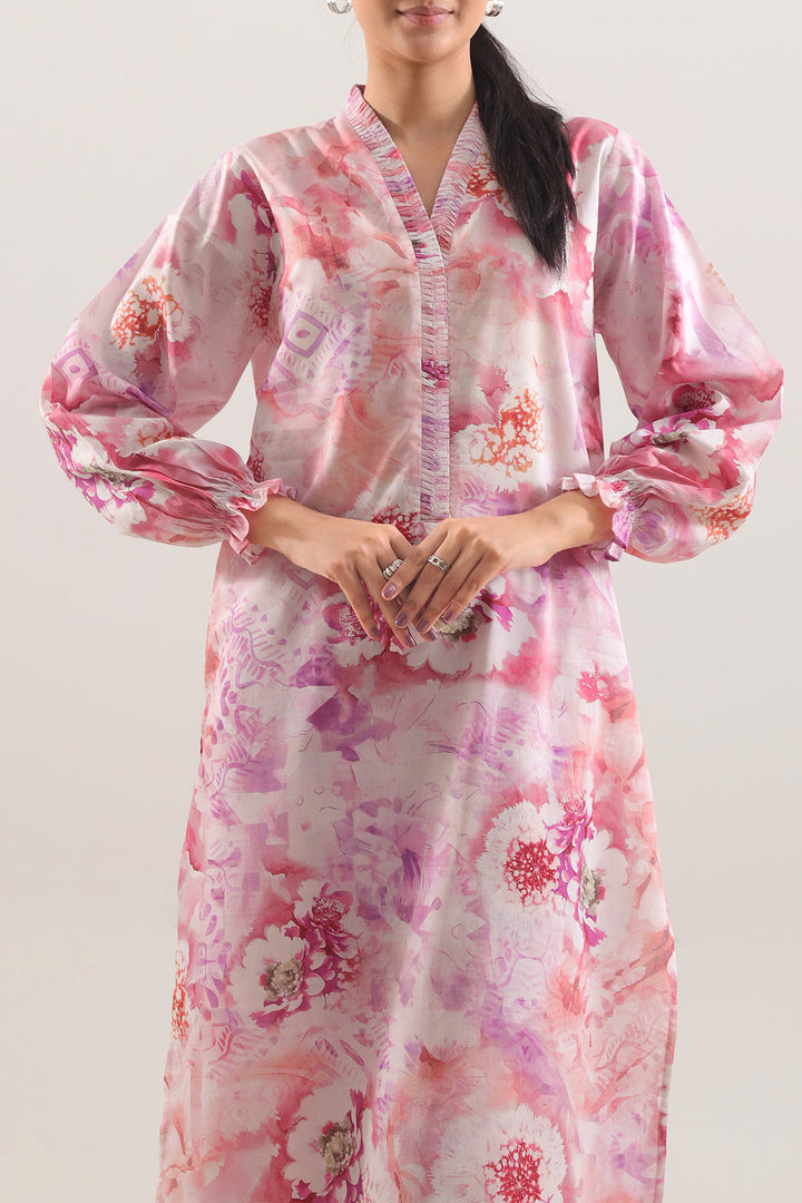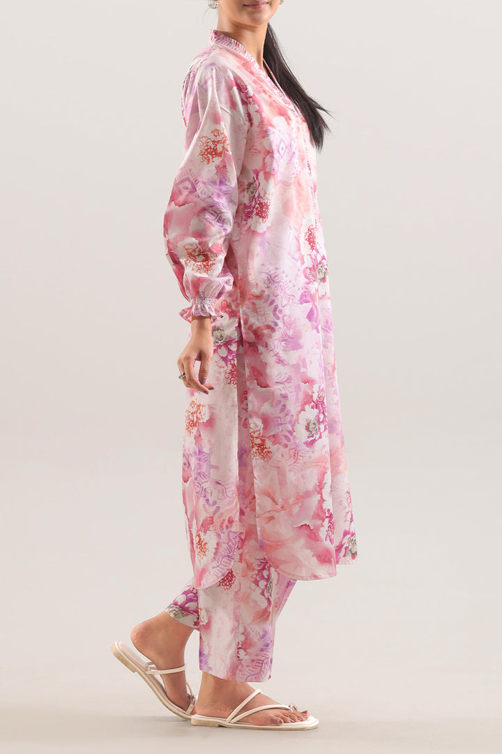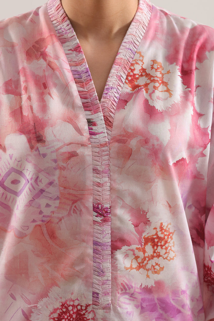 Printed Cambric Stitched 2-Piece By SAYA Glows In A Cheerful Pink Shade. Crafted From Lightweight Cambric Fabric, It Delivers Breathability And Soft Comfort For All-Day Wear. The Shirt Features A Stylish Printed Motif With Clean Tailoring And A Neat Collar, While The Trouser Complements With A Polished Cut. Ideal For Daytime Events, Casual Office Looks, Or Elegant Summer Styling.