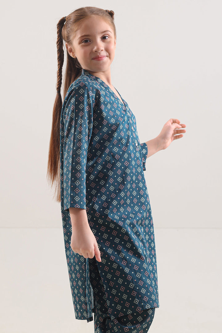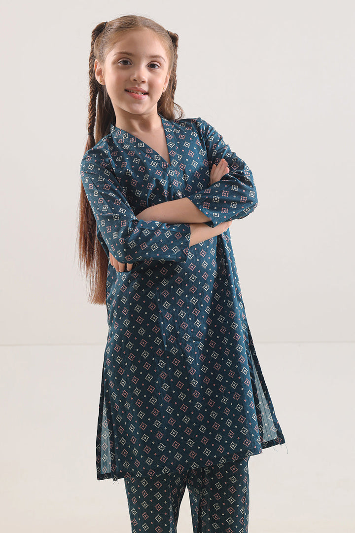 Printed Cambric Stitched Shirt And Trouser For Kids By SAYA Features Premium Cambric Fabric In A Fresh Green Tone With Playful Print Across Both Shirt And Trouser. The Ready-To-Wear Ensemble Offers Airy Comfort, Tailoring Convenience, And Child-Friendly Durability—Perfect For Busy Playdates, Casual Outings, Or Festive Family Moments That Blend Fun, Practicality, And Youthful Charm.
