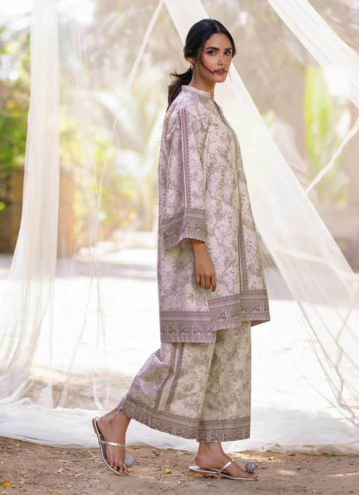 The Pink Cotton Printed Co-ord Set from Summer Essence '25, features band collar & full-length sleeves.
