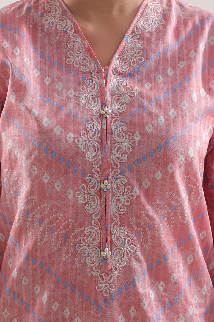 Elevate Your Chic Casual Lineup With This SAYA Printed Embroidered Cambric 2-Piece Set. Crafted From Premium Cambric Fabric That Offers A Smooth, Soft Feel, The Shirt Features Delicate Print Accents Enhanced By Subtle Embroidery Toward The Neck And Sleeves. The Ready-To-Wear Trouser Matches In Tone And Tailoring, Delivering A Polished Yet Easy Ensemble. Ideal For Brunch Meetings, Day Events, Or Polished Weekend Wear That Needed A Touch Of Refinement Without Overstatement.