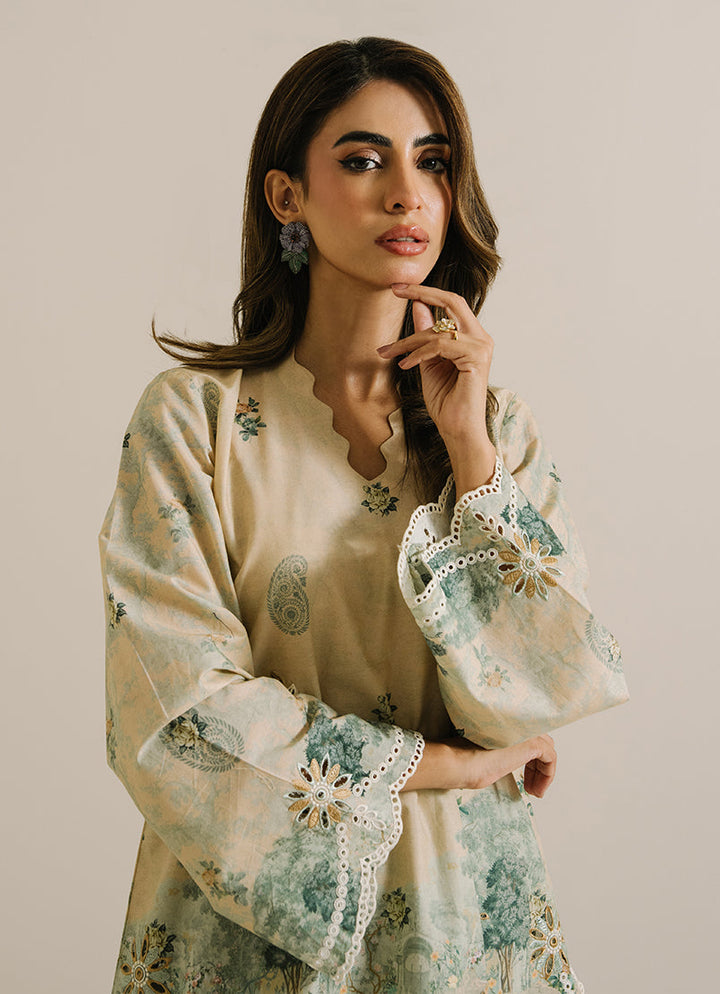 The Beige Cotton Embroidered Co-ord Set from our IM Print category features V neckline & full-length bell sleeves paired with straight trousers.