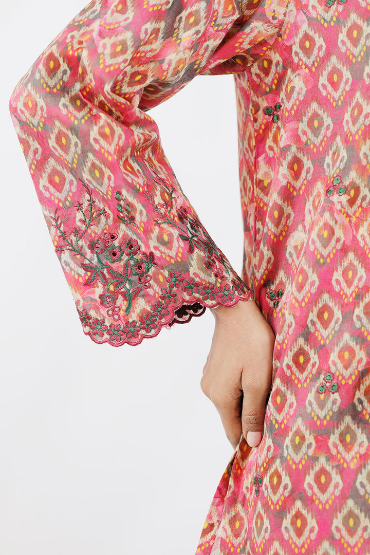 Add elegance to your wardrobe with this printed and embroidered jacquard cotton stitched shirt by Saya. Crafted from textured jacquard cotton, it features intricate embroidery on a vibrant print—perfect for casual and semi-formal occasions. Shop now at Saya.pk, your trusted fashion destination.