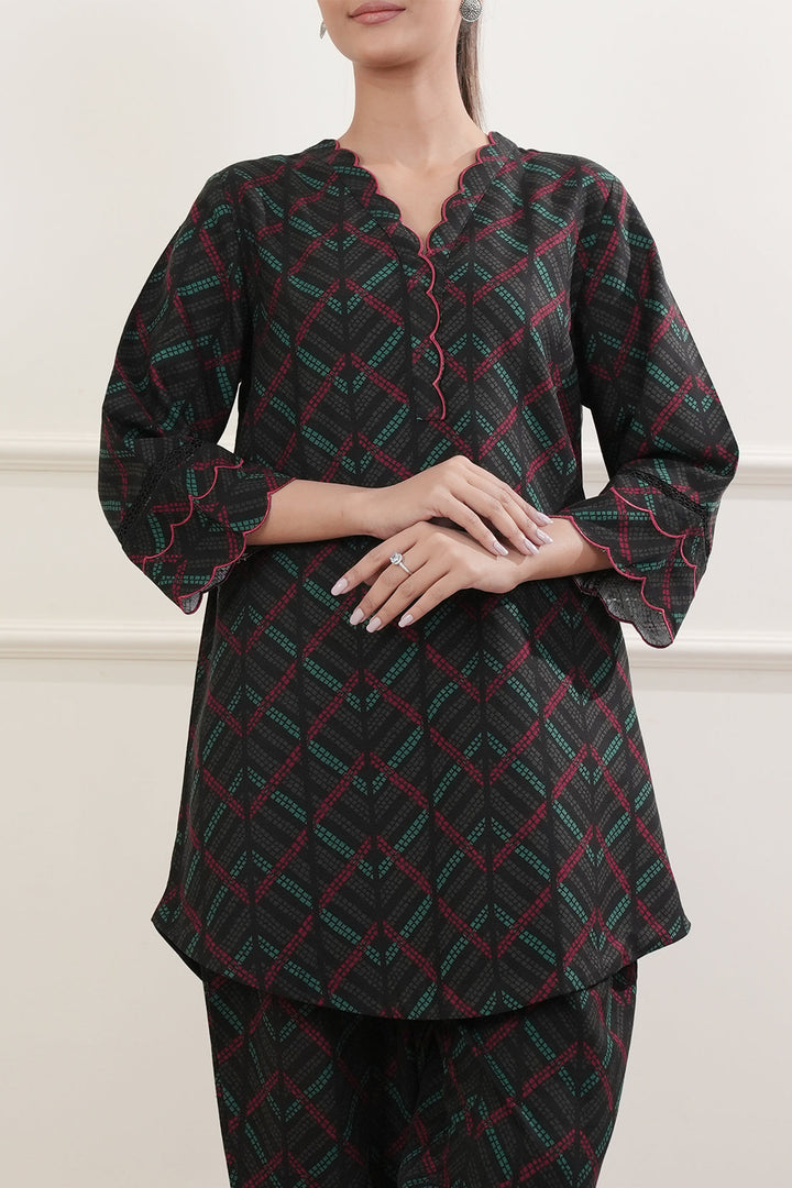 Elevate your winter wardrobe with Saya's Printed Embroidered Khaddar Stitched Shirt in classic black. Crafted from premium khaddar fabric, this ready-to-wear piece features intricate embroidery that seamlessly blends traditional charm with modern elegance. Perfect for casual outings and semi-formal occasions, it offers both warmth and style during the cooler months.
