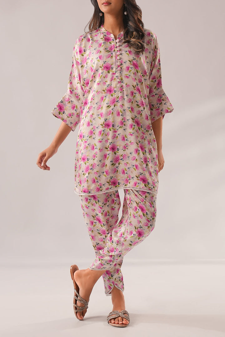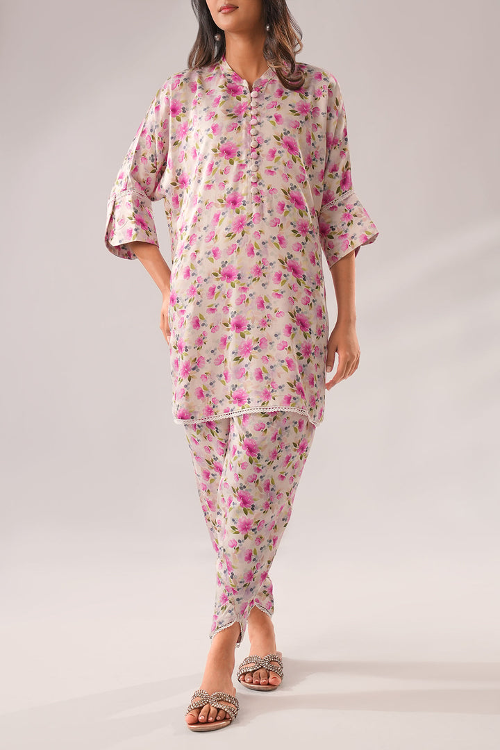 Printed Herringbone Stitched Shirt By SAYA, Tailored From Fine Herringbone Fabric That Blends Texture With Lightweight Comfort. The Ready-To-Wear Shirt Comes In Elegant Cream Hue With a Subtle Print Overlay, Accentuated by Precise Stitching and Clean Finish. Designed For Semi-Formal And Casual Occasions alike—perfect For Day Work, Meetings Or Stylish Outings. The Soft Structure Ensures Ease And Draping Without Bulk, Adding A Refined Touch To Everyday Wardrobe.