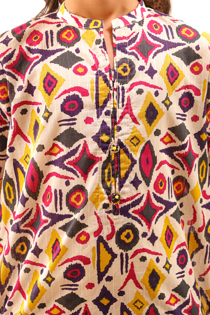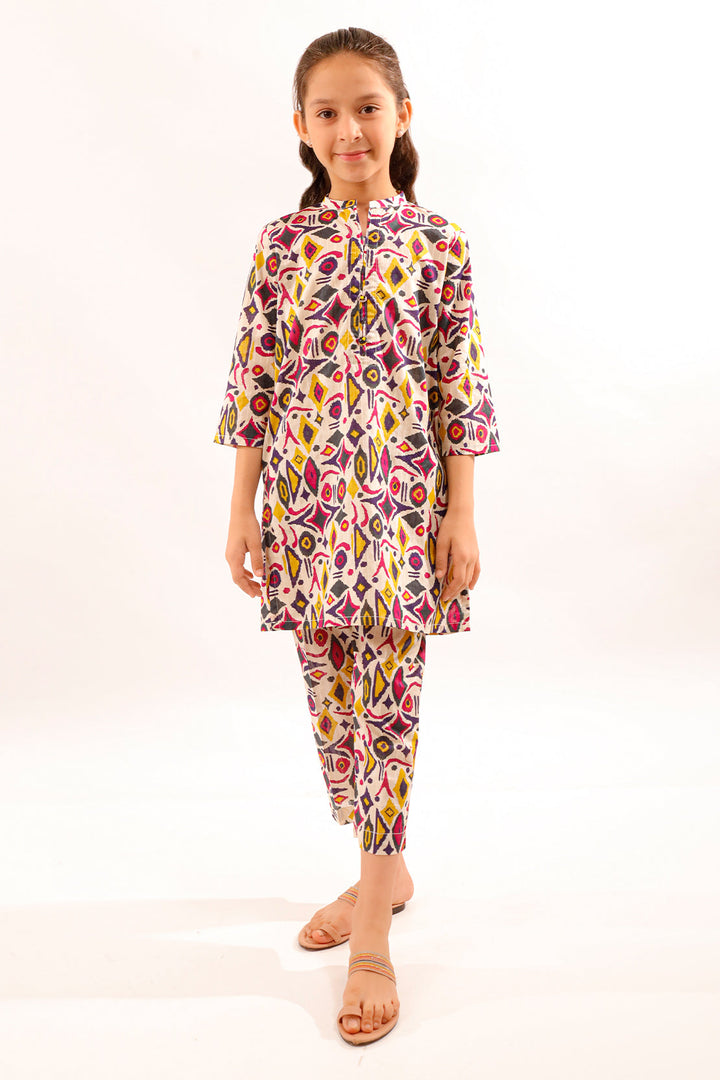 A playful fusion of vibrant print and breathable fabric, this kids’ 2-piece set features a stitched lawn shirt with matching trousers. Ideal for summer wear, it ensures all-day comfort and style for your little one at family events, school, or casual outings.