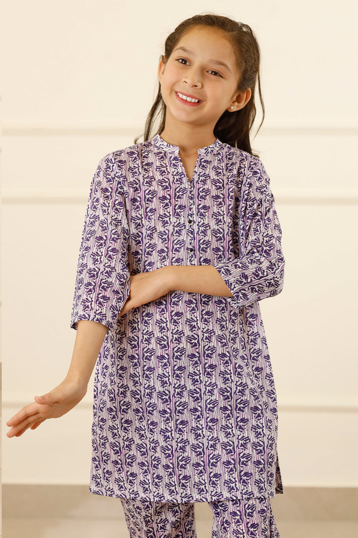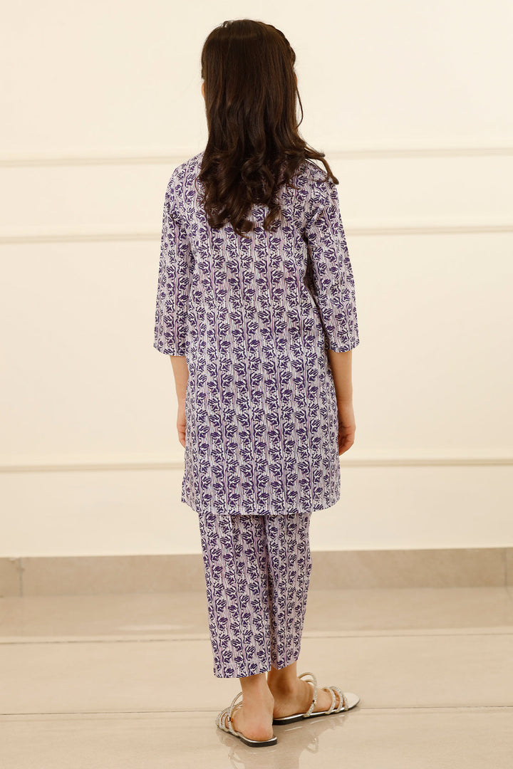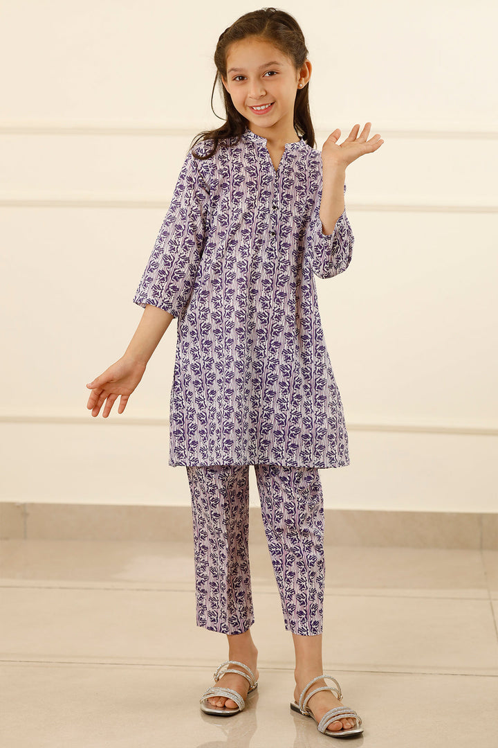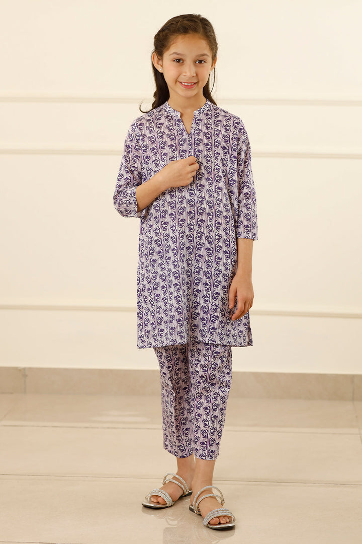 Introducing Saya's Printed Lawn Stitched 2-Piece ensemble for kids in a delightful purple hue. This set features a premium printed lawn shirt paired with matching trousers, both crafted from high-quality, breathable lawn fabric to ensure comfort during active play and daily wear. The ready-to-wear design offers convenience, making it an ideal choice for casual outings and semi-formal events.