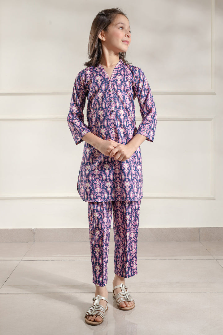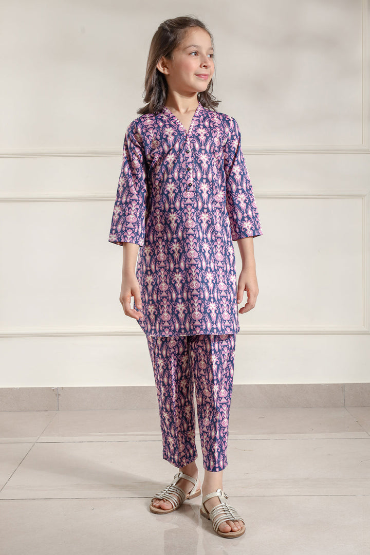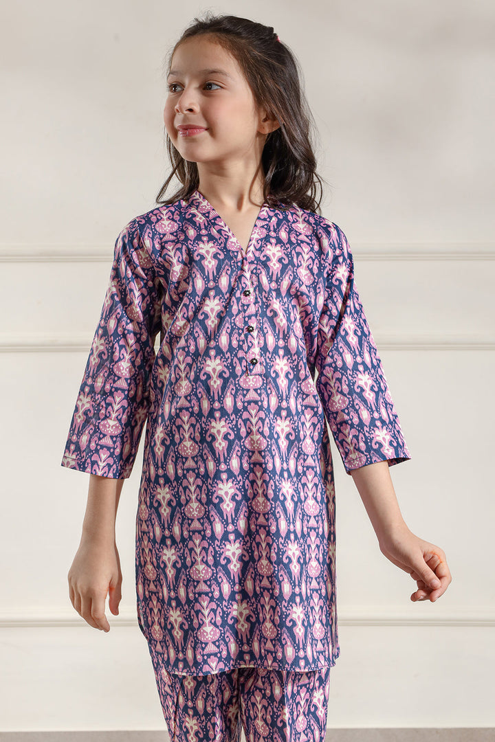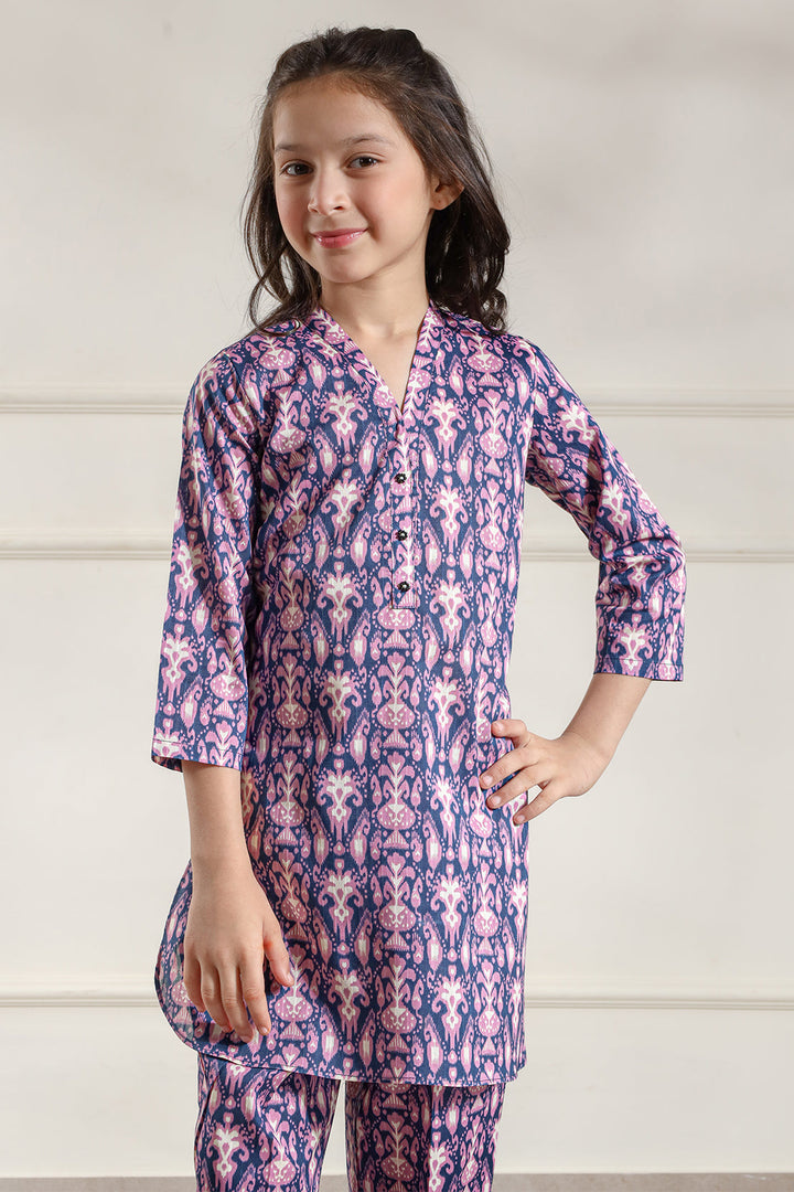 Saya's Printed Lawn Stitched 2-Piece Set for Kids (Design: SP-9987) in blue combines comfort and style for your child's summer wardrobe. Crafted from premium lawn fabric, this lightweight ensemble ensures your little one stays cool and active throughout the day. Ideal for daily wear, school, and weekend outings, it offers both functionality and fashion.