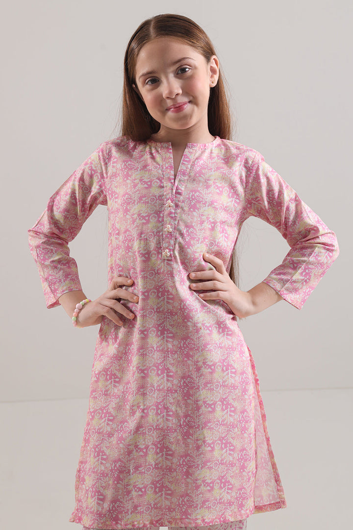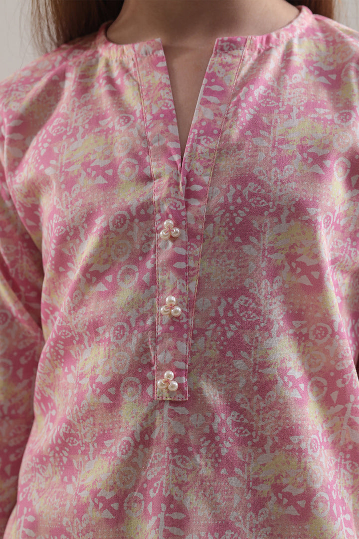 Printed Lawn Stitched 2-Piece For Kids By SAYA Features Luxuriously Soft Lawn Fabric In A Cheerful Pink Tone, Adorned With Playful Seasonal Print Across A Ready-To-Wear Shirt. Paired With A Matching Lawn Trouser, This Set Delivers Airy Comfort, Tailoring Convenience, And Child-Friendly Durability. Perfect For Playdates, Casual Outings, Or Festive Family Days—Effortlessly Blending Practicality With Youthful Charm.