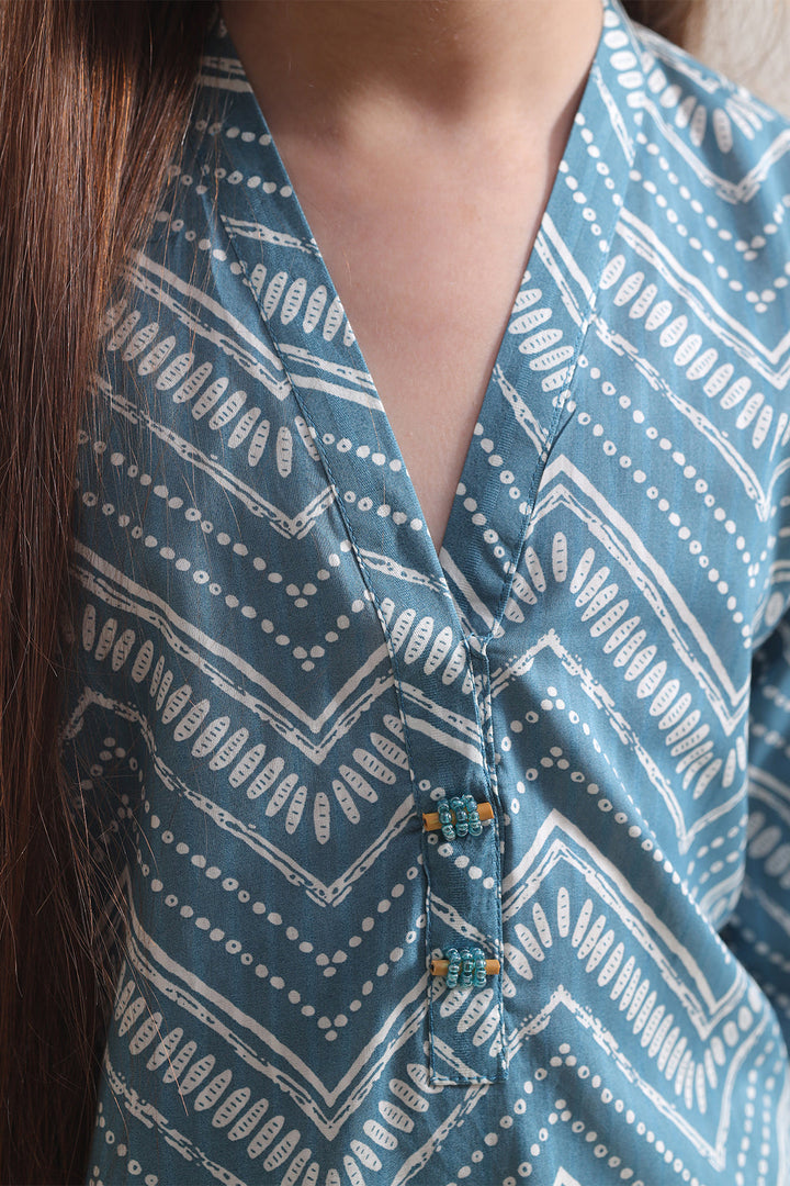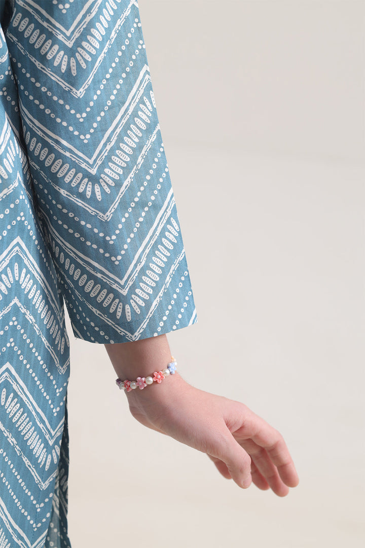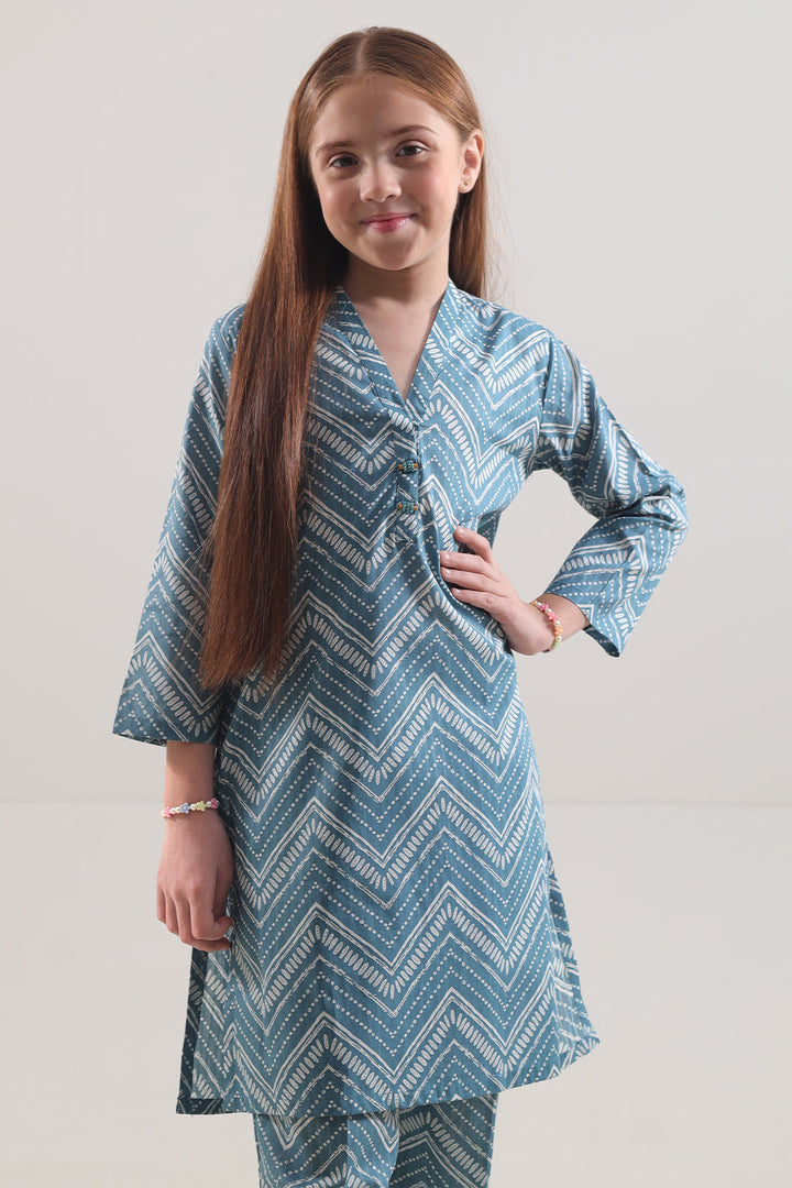 Printed Lawn Stitched Two-Piece Shirt & Trouser For Kids By SAYA, Made With Ultra-Soft and Breathable Lawn Fabric To Keep Your Child Cool And Comfortable. The Shirt Features A Bright Teal Base With Cheerful All-Over Print, Accompanied By A Trouser With Elastic Waist For Ease Of Movement. Ready-To-Wear With Neat Stitching And A Relaxed Fit That Lets Kids Play Freely. Ideal For Summer Outings, School Days Or Casual Family Gatherings.