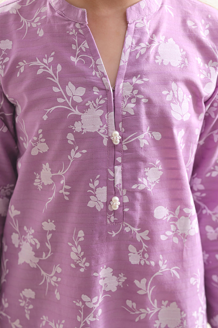 Enchanting And Poised, This SAYA Printed Lawn Stitched 2-Piece (Shirt + Trouser) For Kids In Light Purple Offers A Delightful Blend Of Comfort And Style. The Premium Lawn Fabric Ensures Breathable Lightness And A Silky Soft Touch That Moves Gracefully With Little Ones. A Gentle Print Drapes Over The Light Purple Base With Subtle Charm, Adding Character Without Overpowering. With Impeccable Stitching And Clean Lines, The Ensemble Maintains A Neat Silhouette Even Through Play. Ideal For Daytime Celebrations, Family Gatherings, Or Smart Casual Outings, This Duo Lets Kids Radiate Style With Ease.