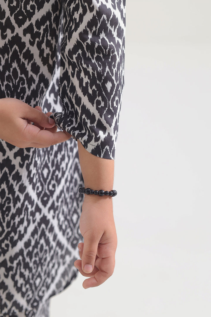 SAYA Printed Lawn Stitched Two-Piece Shirt And Trouser Set For Kids In Black Featuring Premium Lawn Fabric With Stylish Print Design Throughout Shirt And Trouser That Adds Chic Contrast. Ready-To-Wear Ensemble Delivers Clean Stitching And Polished Finishing For Comfortable Wear And Refined Appearance. Light And Breathable Material Offers Comfort During Playful Days, School Events Or Festive Occasions Where Stylish Simplicity Meets Practicality.