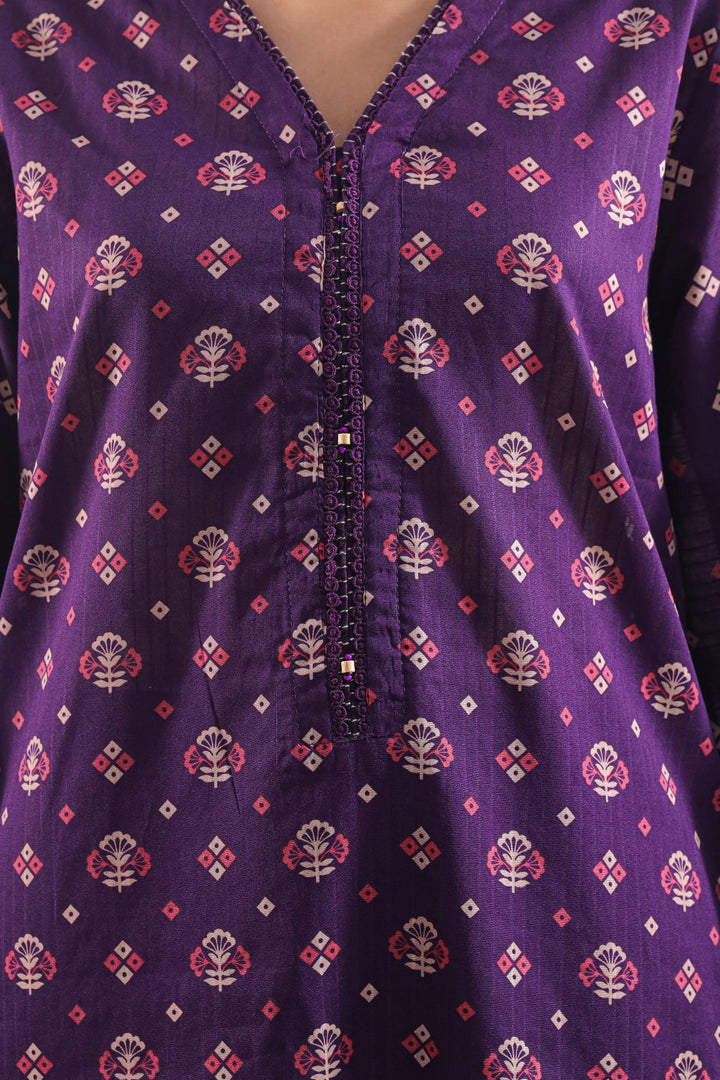 Vibrant Three-Piece Printed Lawn Ensemble By SAYA, Perfectly Crafted From Soft, Lightweight Lawn Fabric That Offers Breathability And Comfort All Day Long. Features A Ready-To-Wear Shirt With Feminine Print Details In Purple Hues, Matched With A Dyed Trouser For Contrast And A Printed Lawn Dupatta That Ties The Look Together With Elegance. Ideal For Warm Weather, Daytime Events Or Casual Outings, This Set Balances Style And Utility. Precise Stitching, Comfort-Focused Fit And Coordinated Design Make It A Versatile Addition To Any Wardrobe. SAYA’s Signature Quality Seen In Every Print, Seam And Finish.