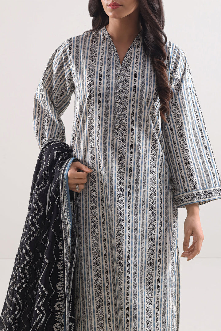 SAYA Printed Lawn Stitched 3-Piece Features Soft, Breathable Lawn Fabric With Sophisticated Prints On The Ready-Tailored Shirt, Accompanied By A Matching Dupatta And Dyed Trouser. Ideal For Daytime Events, Festive Or Casual Wear, It Offers Instant Elegance, Comfort, And Effortless Style Without Tailoring Delay.