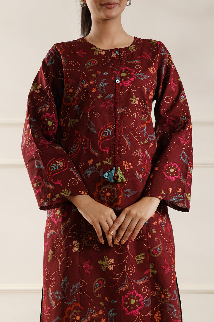 Saya's Printed Lawn Stitched Shirt in Maroon offers a harmonious blend of elegance and comfort, making it an ideal choice for both casual and semi-formal occasions. Crafted from premium lawn fabric, this ready-to-wear shirt ensures breathable comfort and a polished look throughout the day.