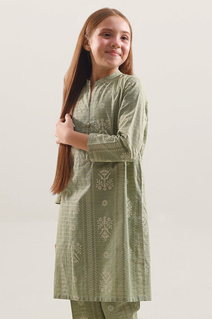 Refreshing And Playful, This SAYA Printed Lawn Stitched Shirt & Trouser For Kids In Green Fuses Comfort With Cheerful Style. The Premium Lawn Fabric Offers Lightweight Breathability And A Silky Soft Feel Against Tender Skin. A Subtle Print Enlivens The Green Base With Charm, While Clean Stitching And Crisp Lines Ensure The Set Retains A Polished Silhouette. Perfect For Daytime Family Events, Festive Gatherings, Or Casual Occasions, This Ensemble Lets Young Ones Dress Smartly With Ease.