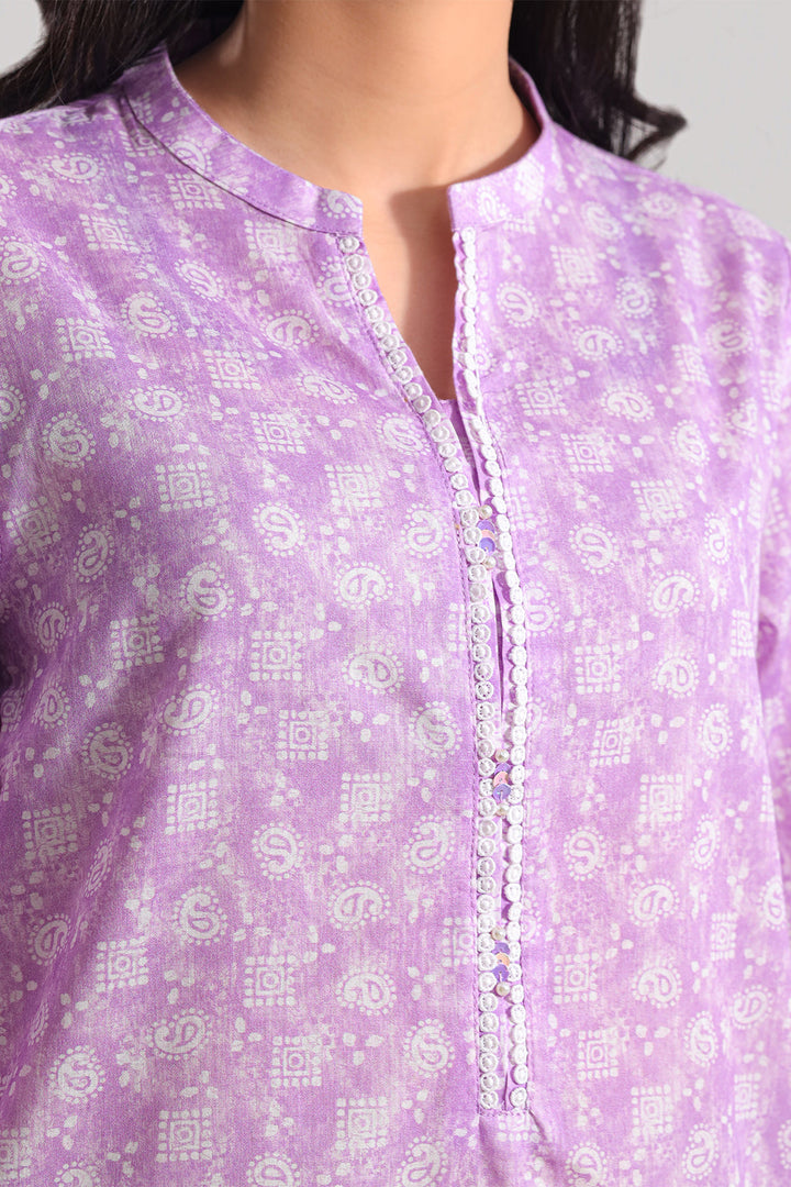 Breeze Through Summer In This Printed Lawn Stitched Shirt By SAYA, Crafted In Feather-Light Lawn Fabric With A Captivating Purple Hue And A Contemporary Floral Print—Effortlessly Balancing Breathable Comfort With Polished Style. Designed As A Ready-To-Wear Staple, It Offers Supreme Ease For Both Casual Get-Togethers And Semi-Formal Moments. Embodying Versatile Elegance And Day-Long Wearability, This Shirt Is A Go-To For Chic, Relaxed Dressing.