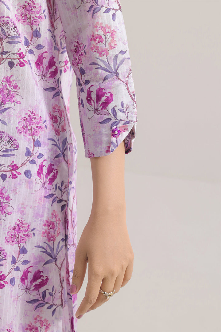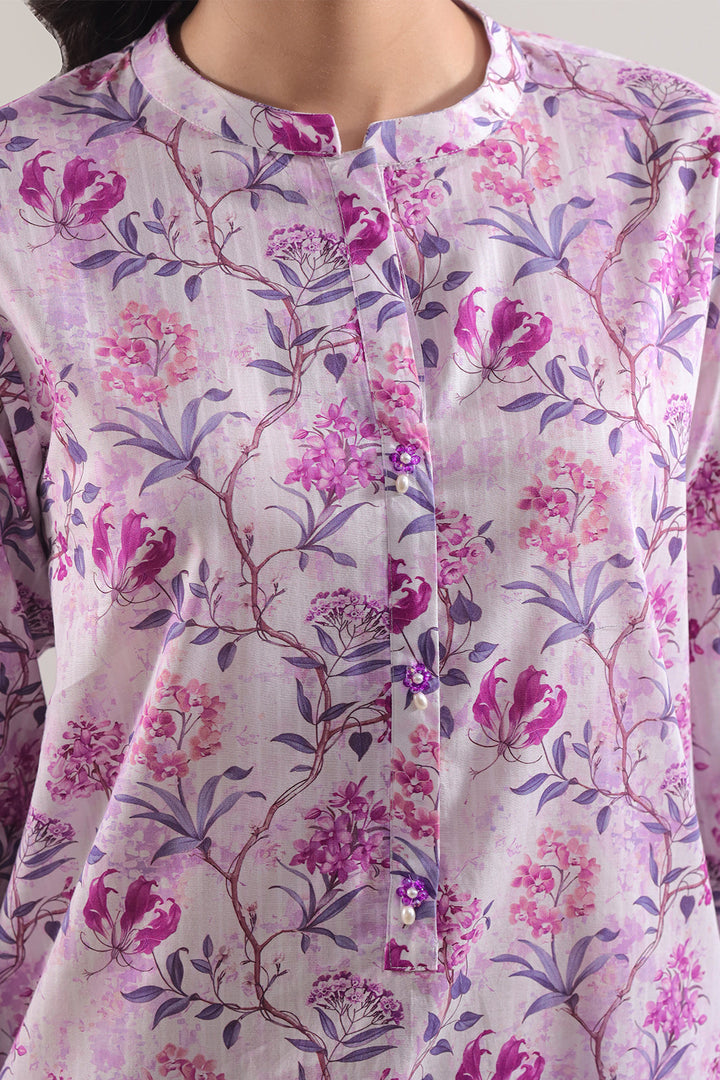Printed Lawn Stitched Shirt By SAYA, Crafted From Lightweight Lawn Fabric To Ensure Breathability And Soft Comfort. The Shirt Features A Rich Lilac Base With Vibrant Digital Prints That Strike The Perfect Balance Between Boldness And Elegance. Ready-To-Wear With Clean Stitching, Smooth Collar, And Polished Hem Finish, It Offers Effortless Style Without Compromise. Ideal As A Standalone Piece Or Paired With Neutral Bottoms For Smart Casual Or Evening Wear.