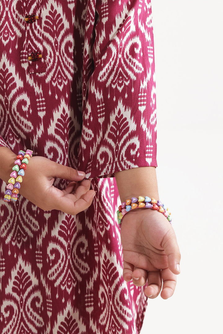 SAYA Printed Lyocell Shirt And Trouser Set For Kids In Maroon Crafted From Premium Lyocell Fabric Known For Its Silky Soft Texture And Breathable Comfort. Shirt Displays Vibrant Print Design That Adds Stylish Flair While Trouser Complements With Clean Stitching And Comfortable Silhouette. Ready-To-Wear Ensemble Offers Polished Finish Perfect For Playful Outings, Family Events Or Casual Festive Moments.