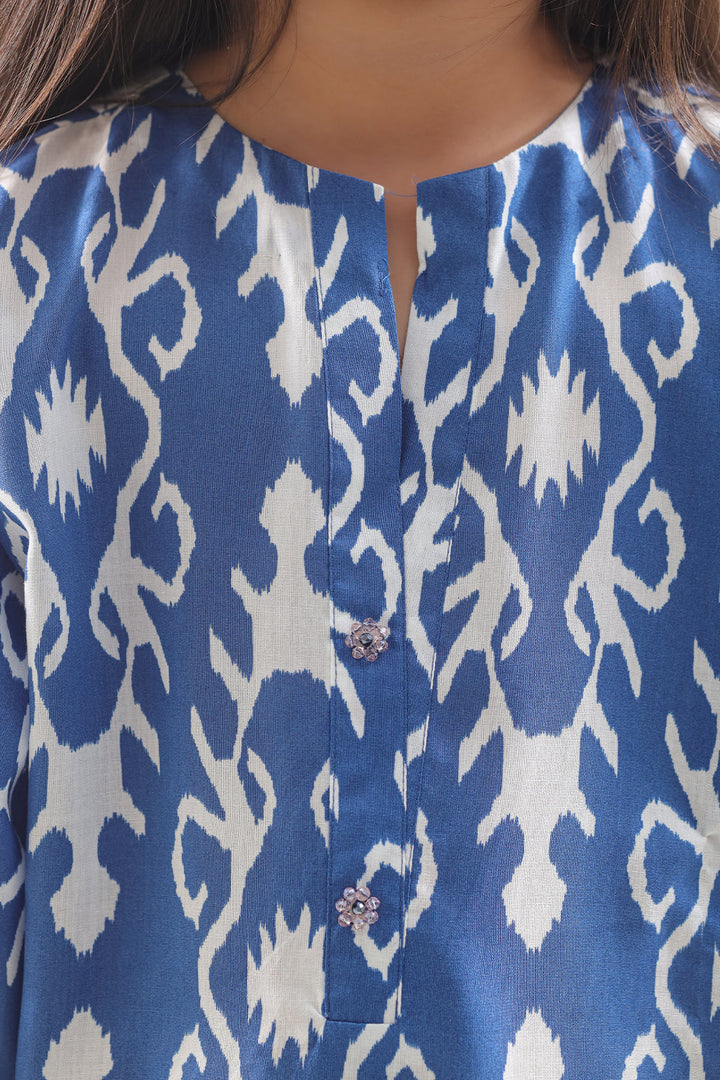 Wrap Your Child In Soft Luxury With The SAYA Printed Silk-Touch 2-Piece Set, Tailored From Silky Lyocell (Or Silk-Touch Blend) Fabric That Glides Against The Skin While Offering Breathability. The Shirt Displays A Charming Print In Subtle Pastels, Enhanced With Clean Stitching And A Light, Relaxed Fit That Lets Kids Move Freely. The Matching Trouser Comes With A Straight Silhouette And A Flexible Waistband For Comfort With Structure. Ideal For Celebrations, Family Gatherings, Or Stylish Daytime Outings, This Ensemble Balances Fabric Quality, Detailed Print, Design Utility And Youthful Style.