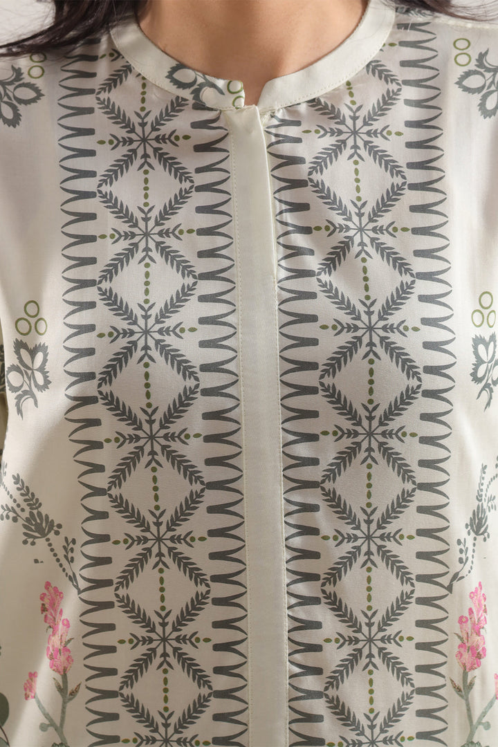 Printed Silk-Touch Stitched Shirt By SAYA Arrives In A Crisp Ivory Hue. Crafted From Premium Lyocell Fabric, It Offers A Silky-Smooth Feel With Breathable Comfort. The Contemporary Print Adds Artistic Flair, While The Tailored Stitching Ensures A Clean Collar, Structured Fit, And Polished Silhouette. Ideal For Daytime Get-Togethers, Casual Meetings, Or Refined Everyday Style—this shirt merges sophistication, comfort, and effortless elegance.