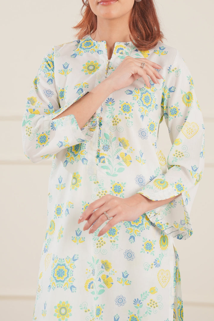 Embrace effortless elegance with Saya’s printed cotton viscose stitched 2-piece outfit. Featuring a beautifully printed shirt paired with a comfortable trouser, this ensemble is designed for a chic yet relaxed look. The breathable cotton viscose fabric ensures all-day comfort, making it perfect for casual outings and daily wear.