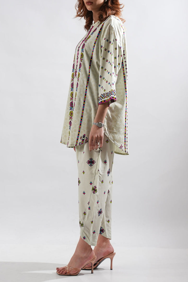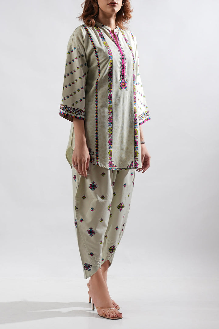 Stay effortlessly stylish with the Printed Cotton Viscose Stitched Shirt from Saya.pk. Made from a premium cotton-viscose blend, this shirt offers the perfect balance of breathability and luxurious drape, making it ideal for Pakistan's warm climate. The vibrant printed design adds a pop of color to your wardrobe, while the ready-to-wear stitching ensures a perfect fit right out of the package.