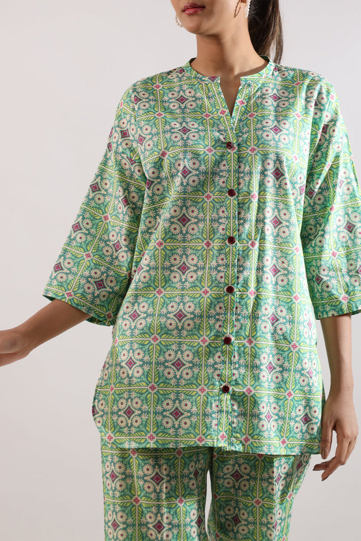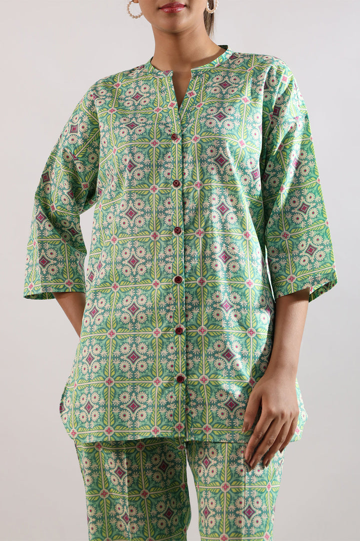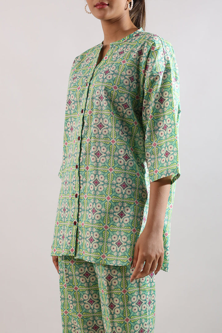 Elevate your wardrobe with Saya.pk's Printed Cotton Viscose Stitched Shirt in a refreshing green hue. Crafted from a soft cotton-viscose blend, this ready-to-wear shirt offers breathable comfort and a polished look, making it ideal for both casual outings and semi-formal gatherings. The intricate print design adds a touch of sophistication, while the meticulous stitching ensures durability and a comfortable fit.