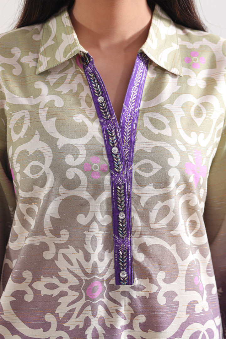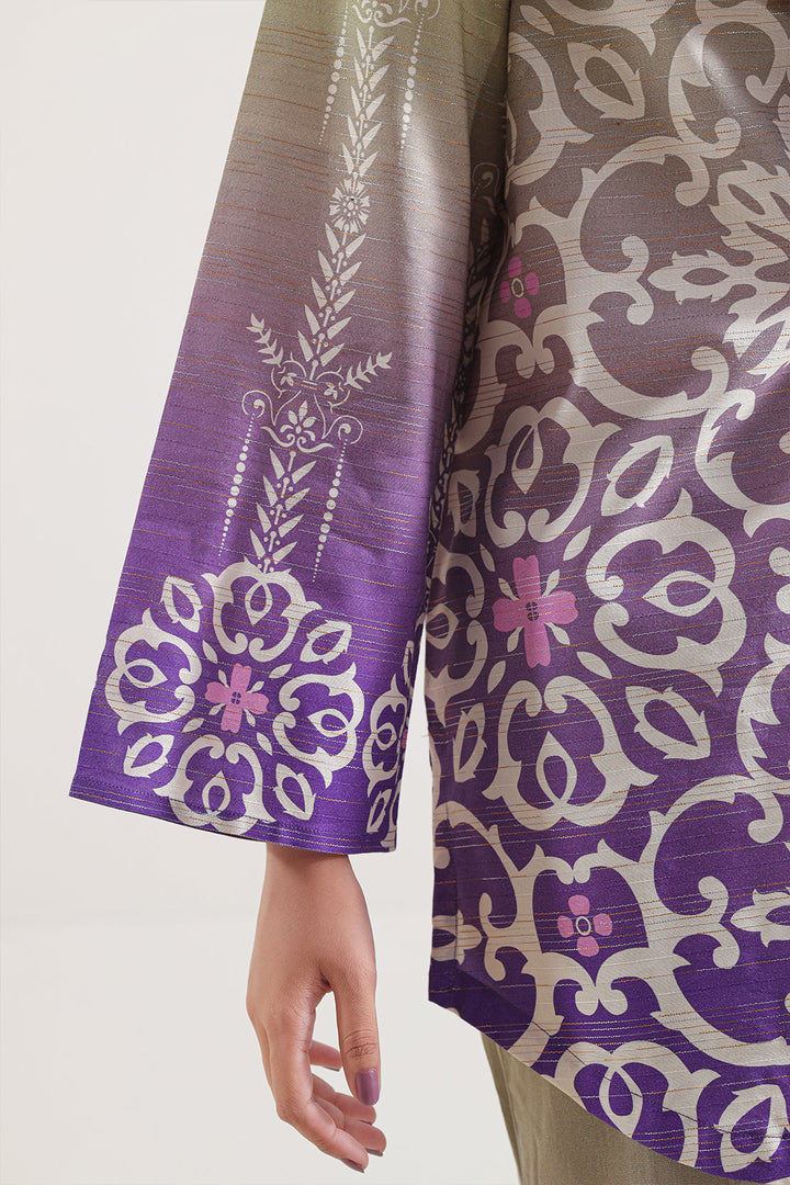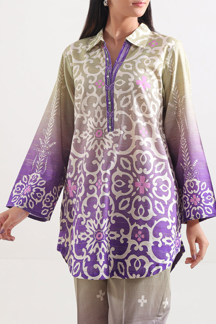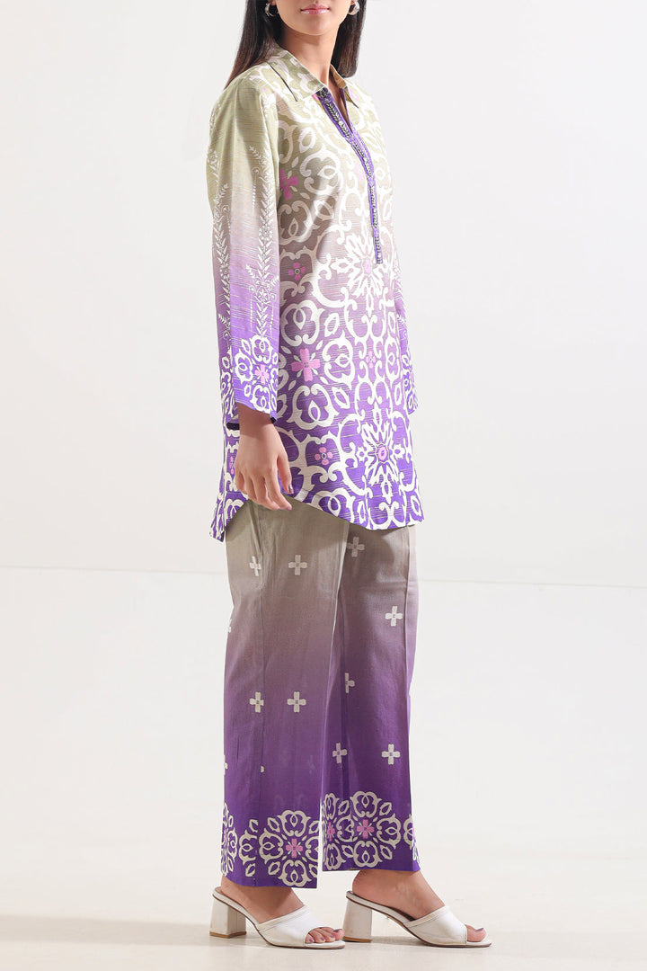 Printed Cotton Viscose Stitched Shirt By SAYA Features a Luxuriously Soft Blend of Cotton and Viscose in a Rich, Refined Purple Hue. Intricately Printed Across a Ready-To-Wear Silhouette, the Shirt Marries Breathable Comfort With Stylish Definition. Its Lightweight Fabric, Elegant Draping, and Artful Print Make It an Ideal Choice for Casual Chic, Office Pop-In, or Semi-Formal Daywear That Radiates Refined Flair.
