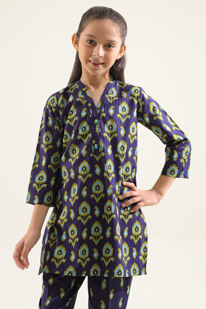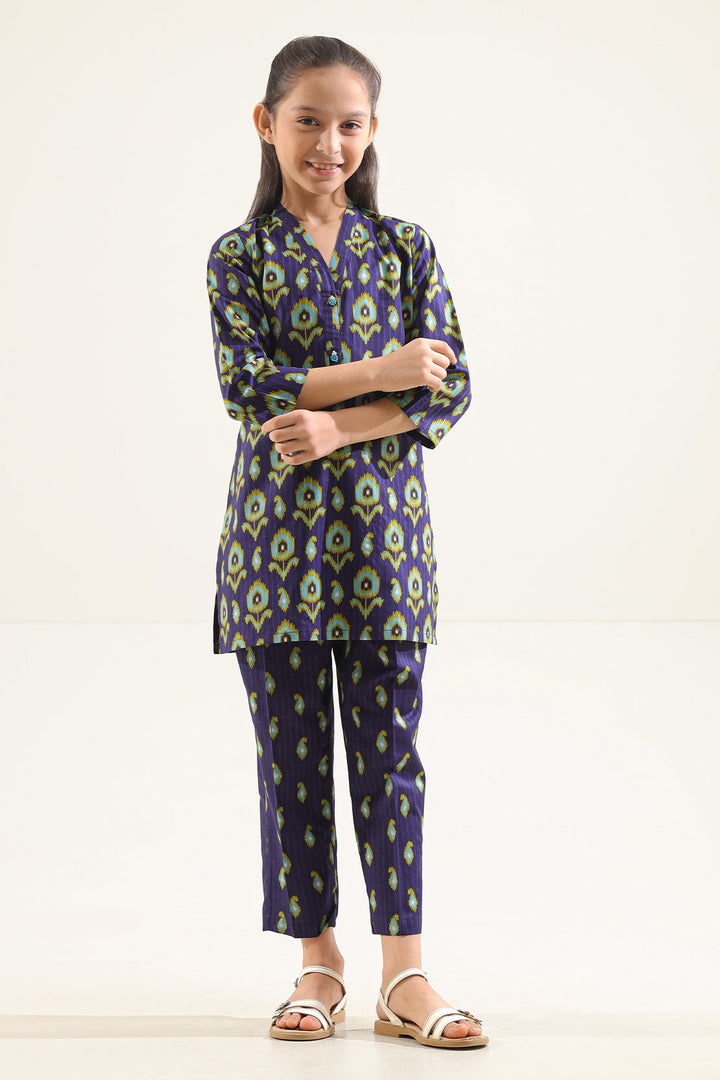 Printed Strip Lawn Stitched 2 Piece (Shirt/Trouser) For Kids