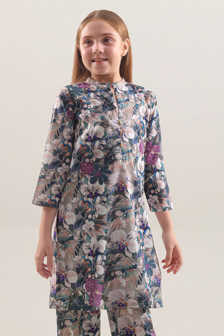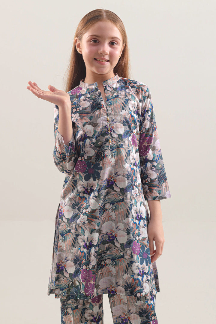 Colorful And Charming, This SAYA Printed Strip Lawn Stitched 2-Piece Set For Kids In Multi Colour Blends Playful Style With Comfort. The Premium Lawn Fabric Offers Breathable Lightness — Perfect For Active Days. The Striped Print Lends Visual Rhythm To The Multi-Colour Palette Without Overwhelming The Design. With Neat Stitching And Clean Tailoring, The Shirt And Trouser Hold Structure Throughout Wear. Ideal For Festive Gatherings, Family Outings, Or Joyful Celebrations, This Ensemble Lets Young Ones Shine With Ease And Grace.