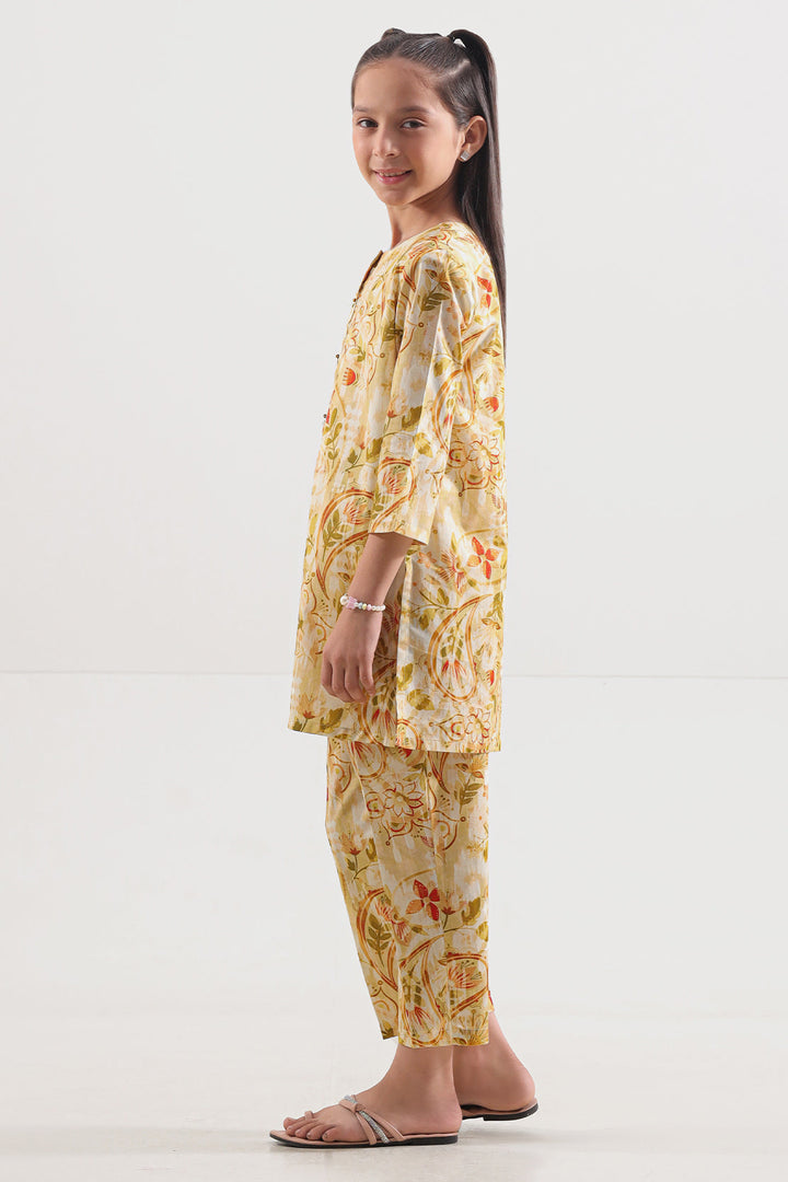 Printed Strip Lawn Stitched Two-Piece Shirt & Trouser For Kids By SAYA, Crafted From Ultra-Soft, Breathable Strip Lawn Fabric For Maximum Comfort During Play And School Days. The Shirt Features Playful Stripes Against A Cheerful Yellow Base, While The Trouser Has An Elastic Waist Ensuring Ease Of Movement. Ready-To-Wear With Precision Stitching And Durable Sequencing, This Set Offers Stylish Utility Without Compromise. A Bright & Fun Ensemble Perfect For Everyday Adventures Or Casual Family Outings.