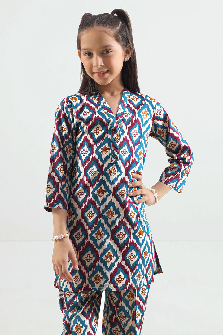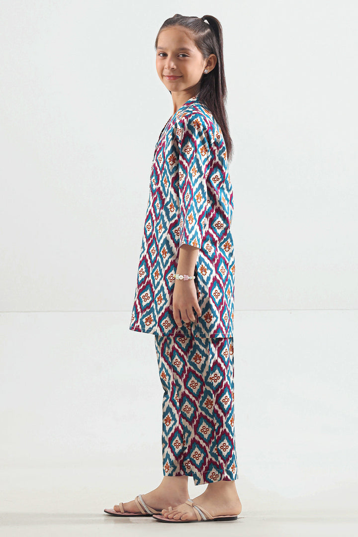 Printed Strip Lawn Stitched 2 Piece (Shirt/Trouser) For Kids