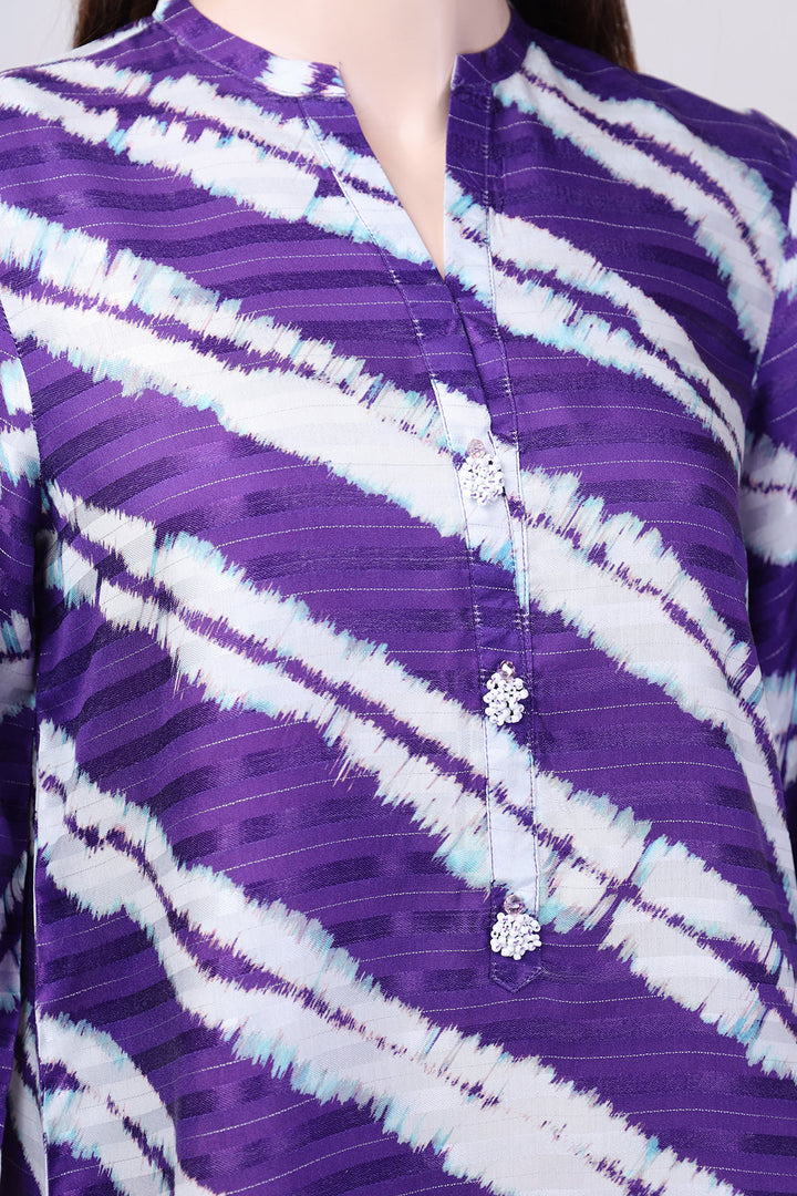 Printed Zari Silk Touch Stitched 2 Piece (Shirt/Trouser)