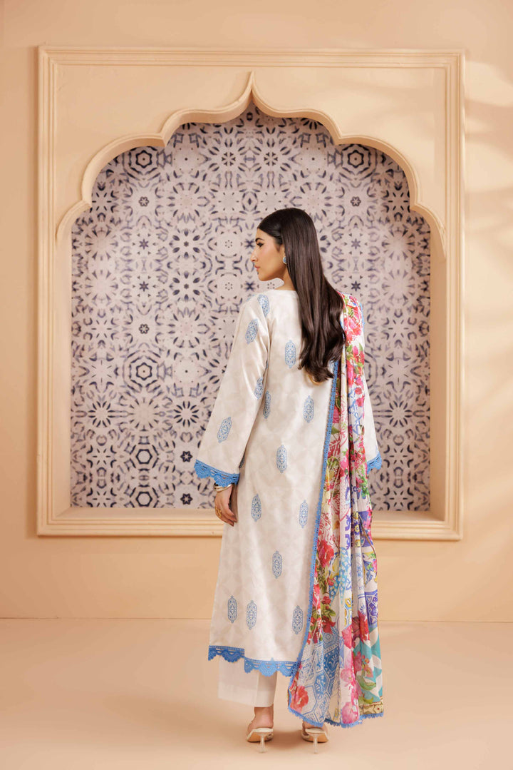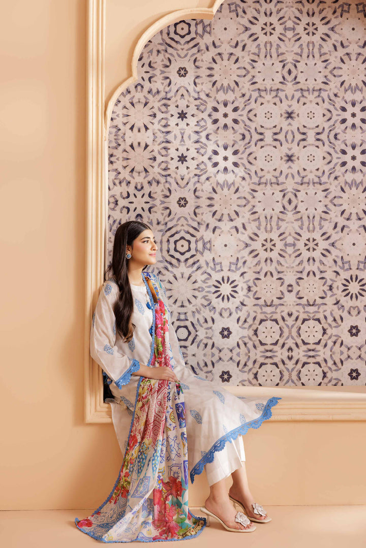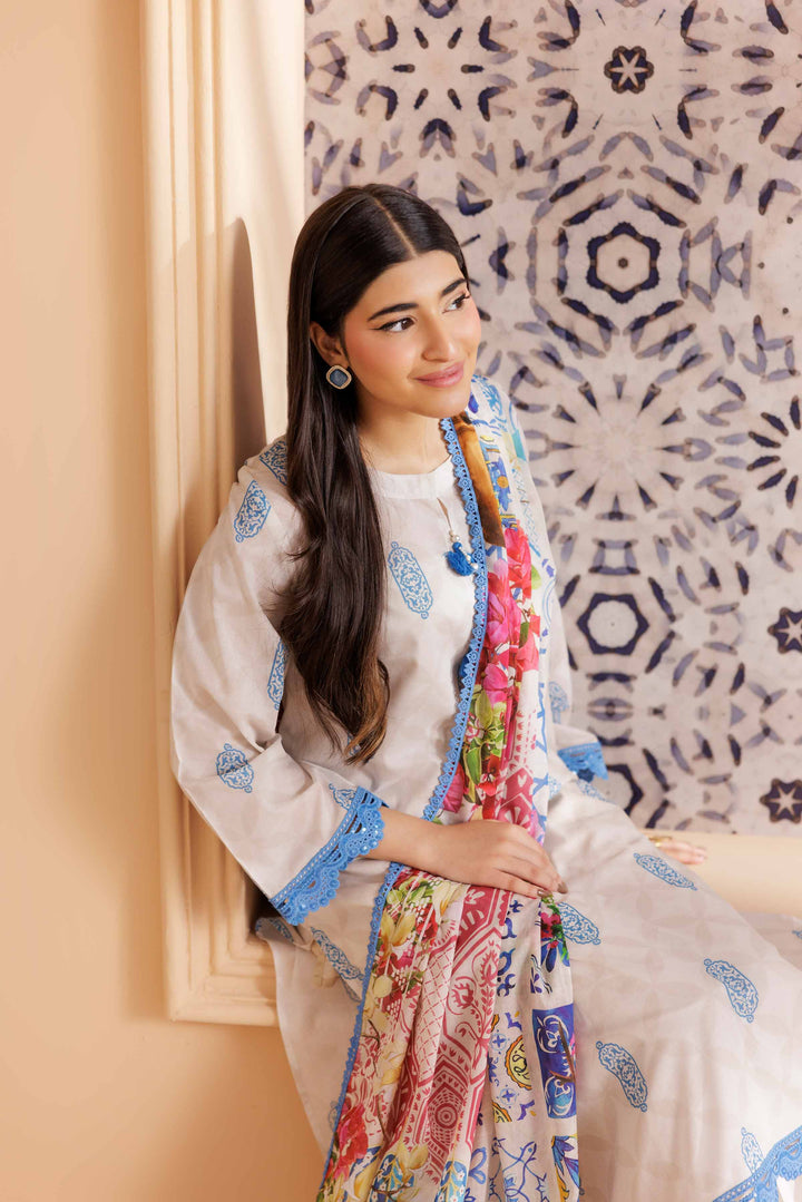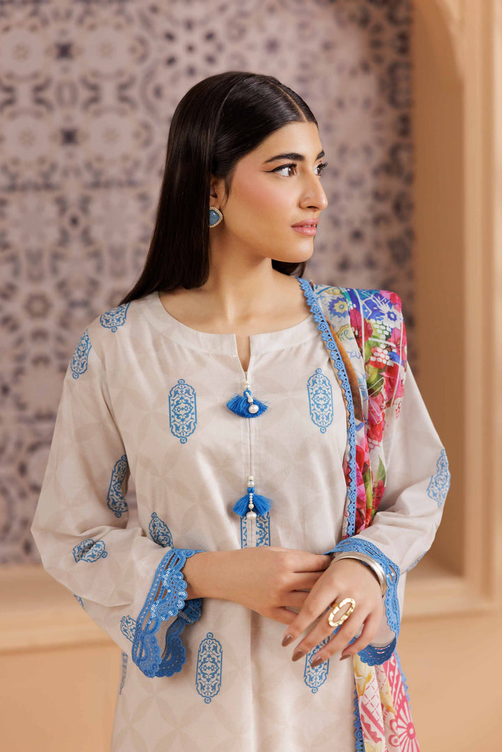 Redefine your summer wardrobe with this beautifully printed three-piece suit from the newest Pret Collection.