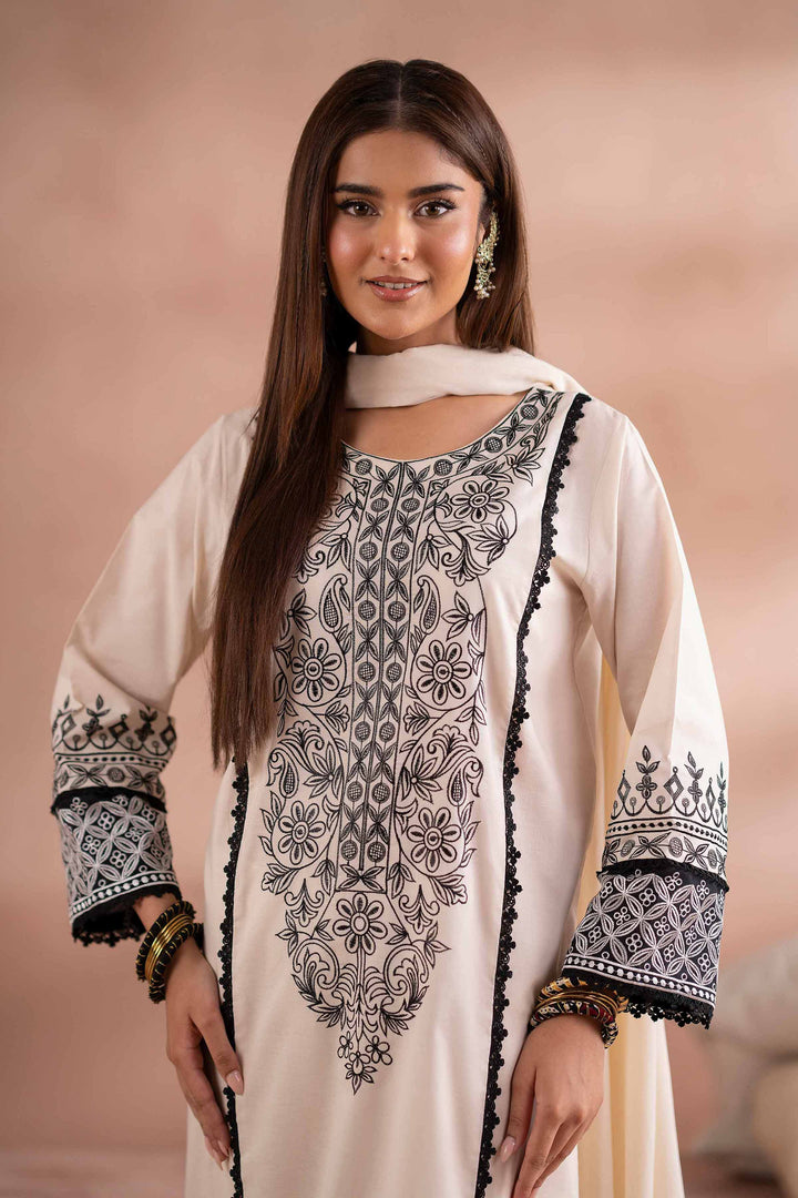 Enhance your entire look with this embroidered three-piece suit from the latest Pret Summer Collection, designed to add elegance and style to your wardrobe.