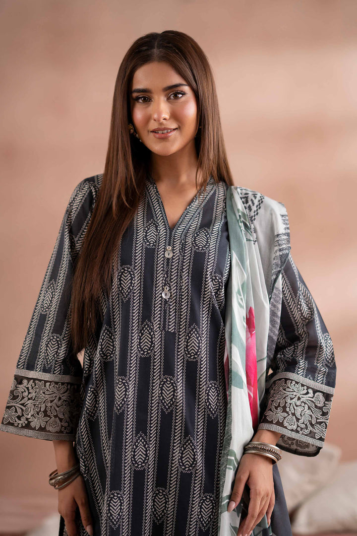 Enhance your entire wardrobe with this printed embroidered three-piece suit from the latest Pret Summer Collection, a stunning blend of vibrant prints, intricate embroidery, and timeless seasonal elegance.