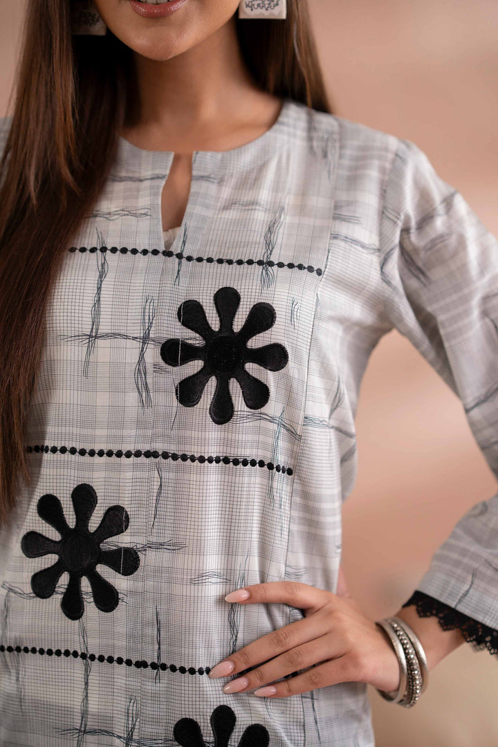 Add value to your seasonal style with this printed embroidered two-piece suit from the latest Pret Summer Collection, crafted for effortless sophistication.
