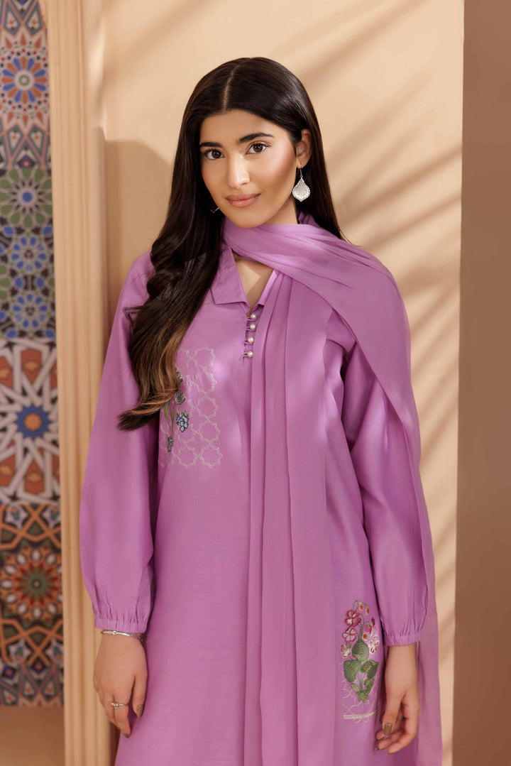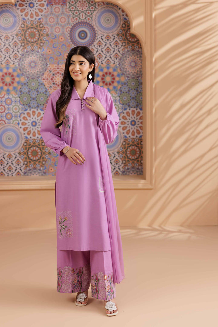 Add refined charm to your wardrobe with this embroidered three-piece suit from the newest Pret Winter Collection, perfect for stylish seasonal styling.