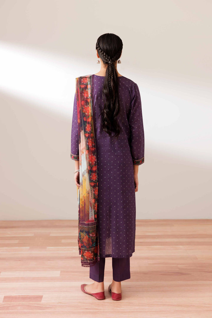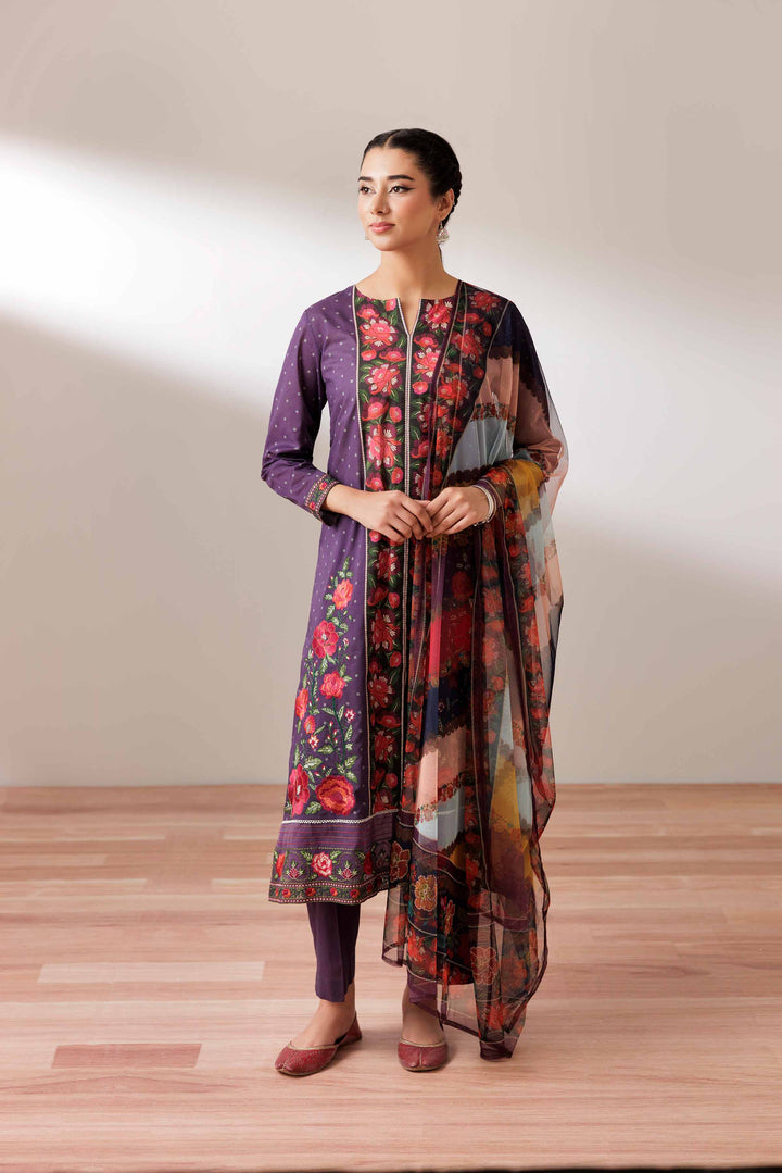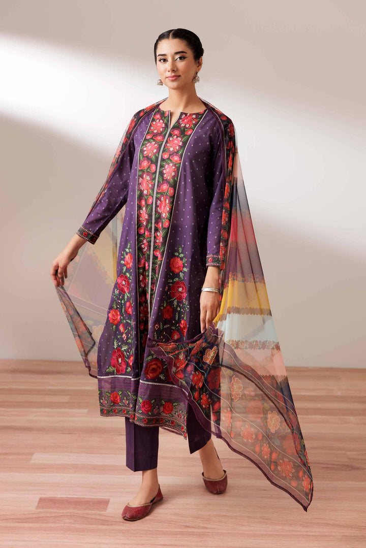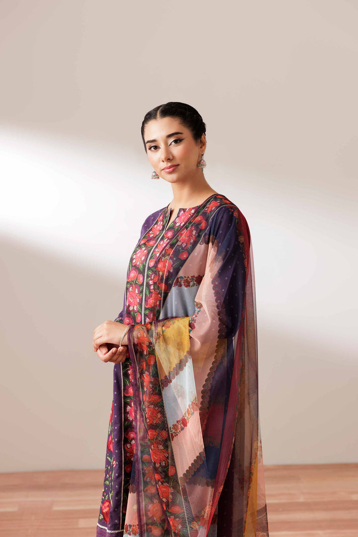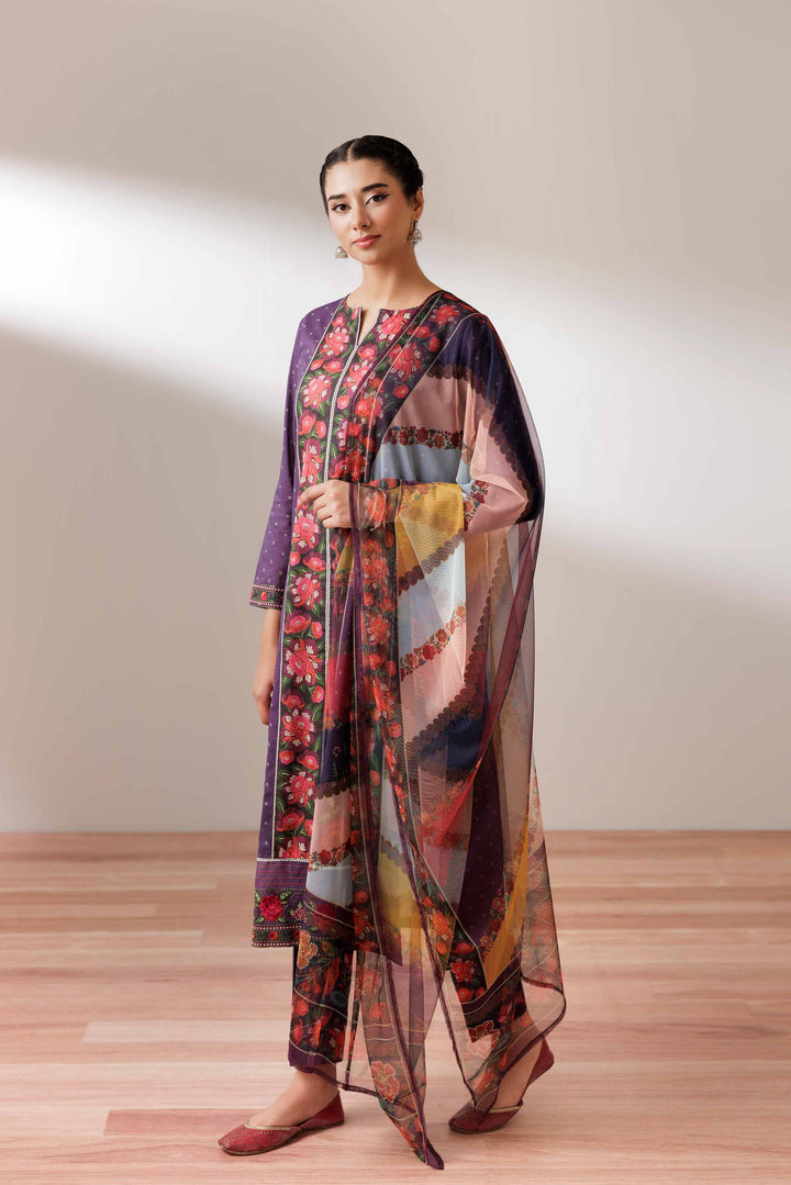 Elevate your summer wardrobe with this printed and embroidered three-piece suit from the latest Pret Summer Collection, featuring vibrant prints, intricate embroidery, and breathable comfort.