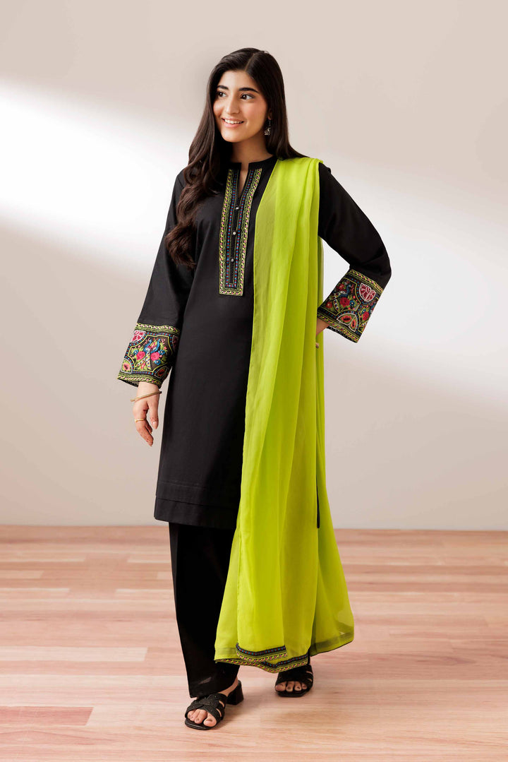 Embroidered Shirt With Dupatta & Shalwar