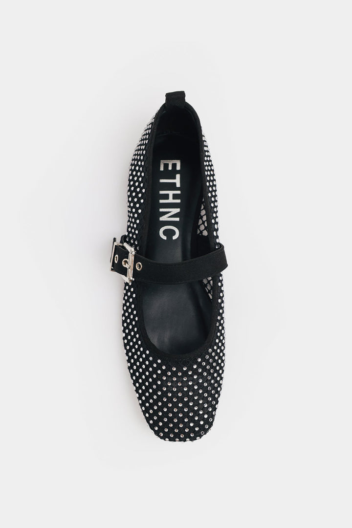 A pair of natural-colored crocheted flat shoes with a Mary Jane strap design. The shoes have a round toe and intricate circular patterns in the crocheted upper material. Each shoe has a black strap across the instep, fastened with a small gold-tone buckle on the side. The boots appear light and breathable, likely intended for casual or summer wear.