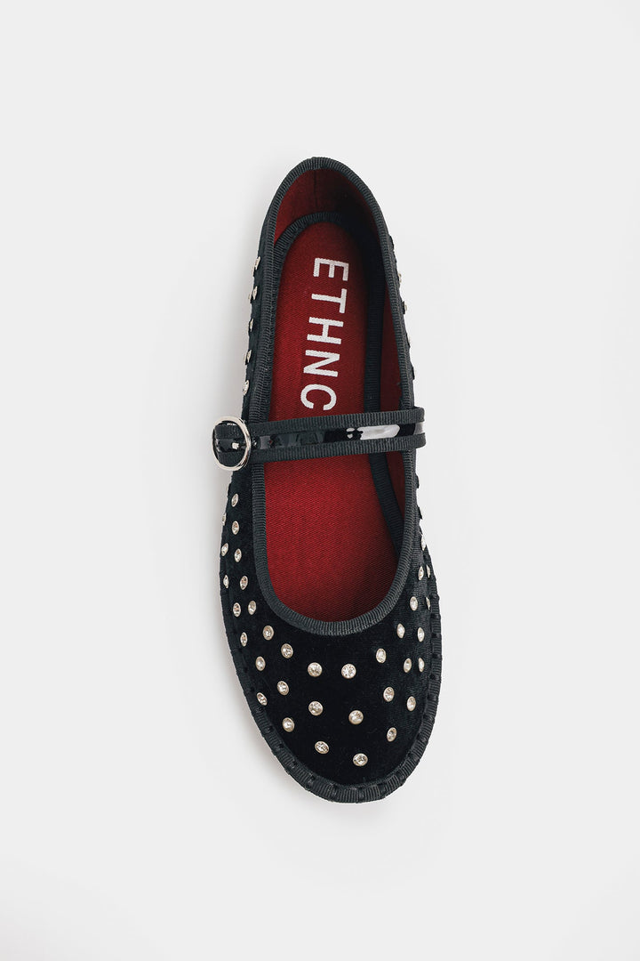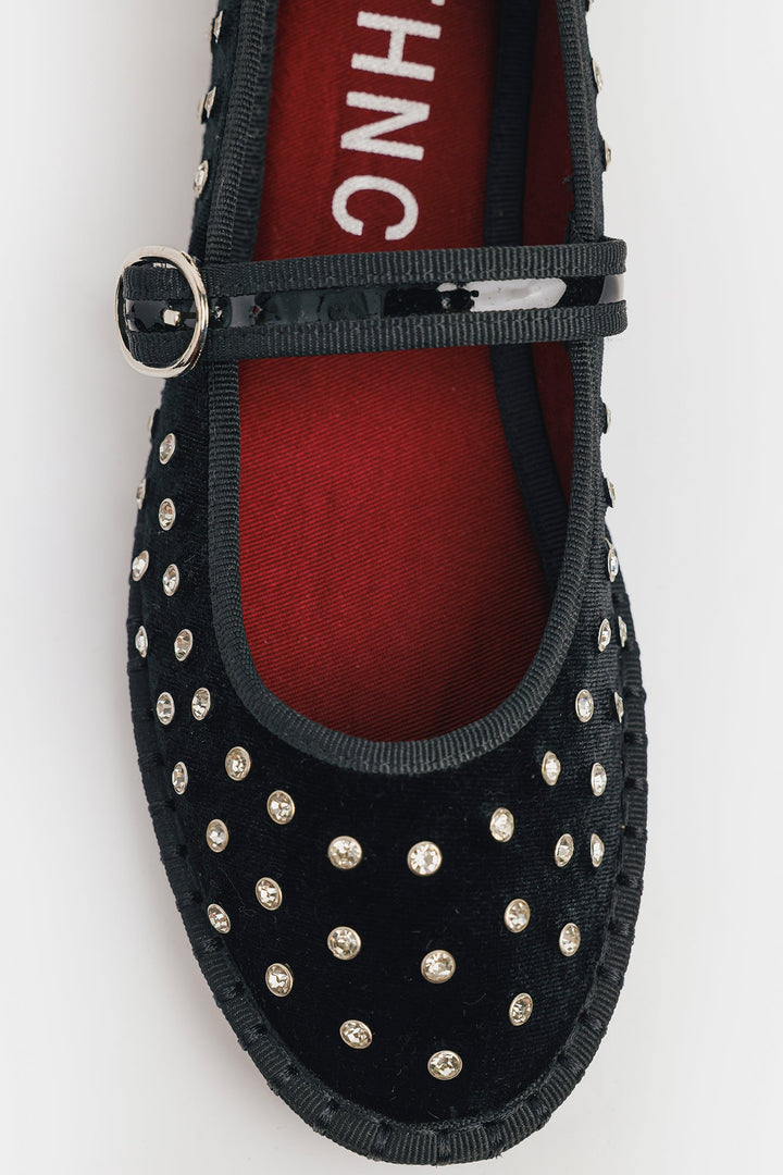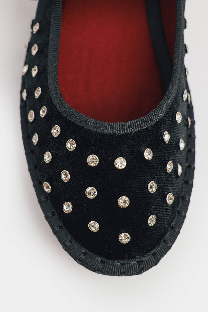 These black pumps feature a secure strap and elegant embellishments that enhance their sophisticated design. The stitched edging along the sides adds refined detail, showcasing expert craftsmanship. Combining comfort with style, they are perfect for elevating both professional and casual ensembles.