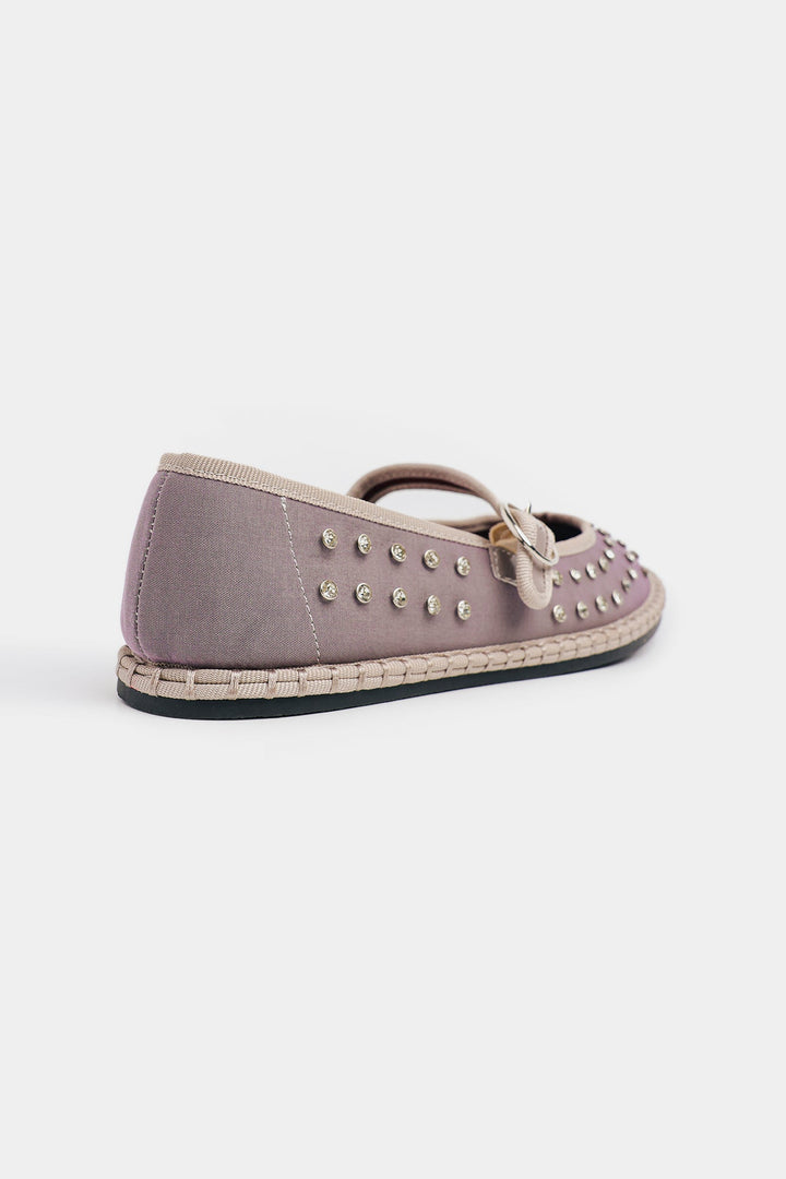 These light grey pumps feature a secure strap and elegant embellishments that enhance their sophisticated design. The stitched edging along the sides adds refined detail, showcasing expert craftsmanship. Combining comfort with style, they are perfect for elevating both professional and casual ensembles.