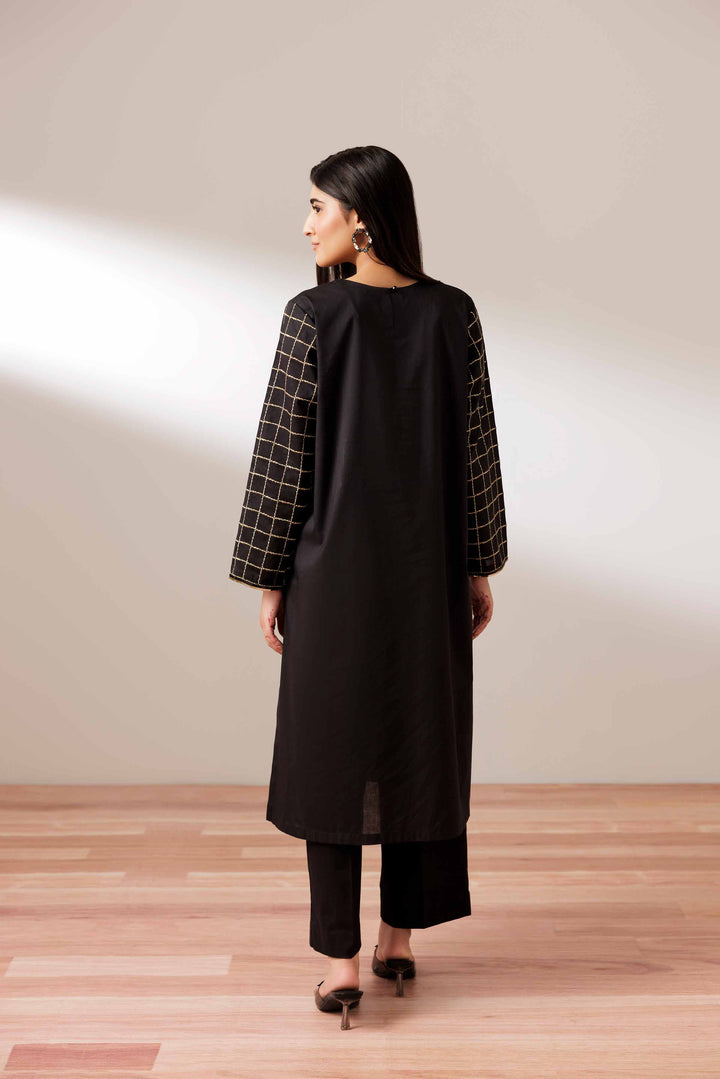 Paneled kurta featuring embroidered front and sleeves, accentuated with all-over lace detailing.