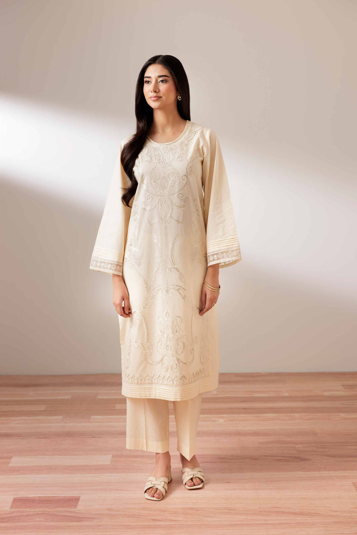 Bring refined distinction to your look with this embroidered two-piece suit from the Pret Winter Collection, perfect for effortless winter style.