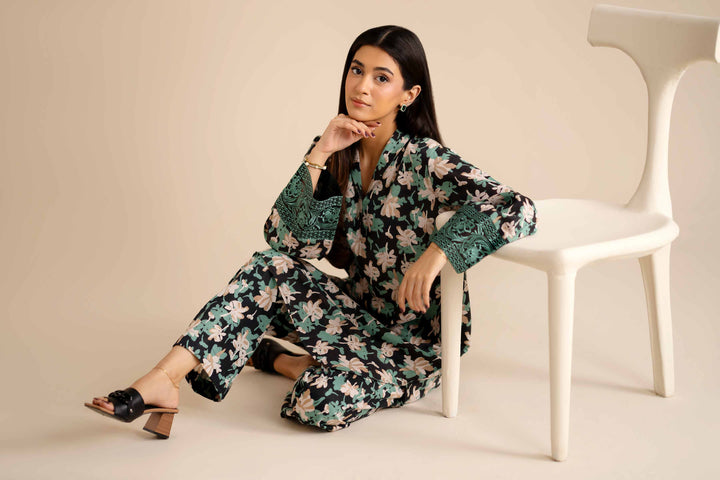 Printed Embroidered Shirt With Trousers