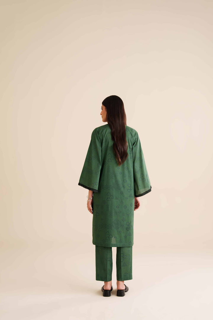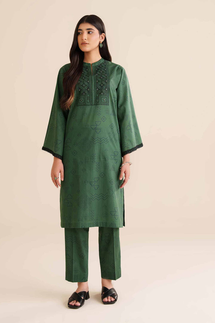 Elevate your winter wardrobe with this printed embroidered two-piece suit from the latest Pret Winter Collection, styled for elegance and seasonal charm.