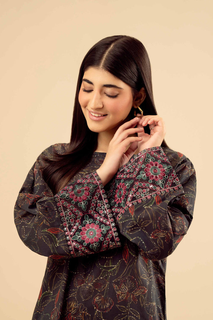 Enhance your winter look with this printed embroidered two-piece suit from the latest Pret Winter Collection, crafted for chic seasonal elegance.