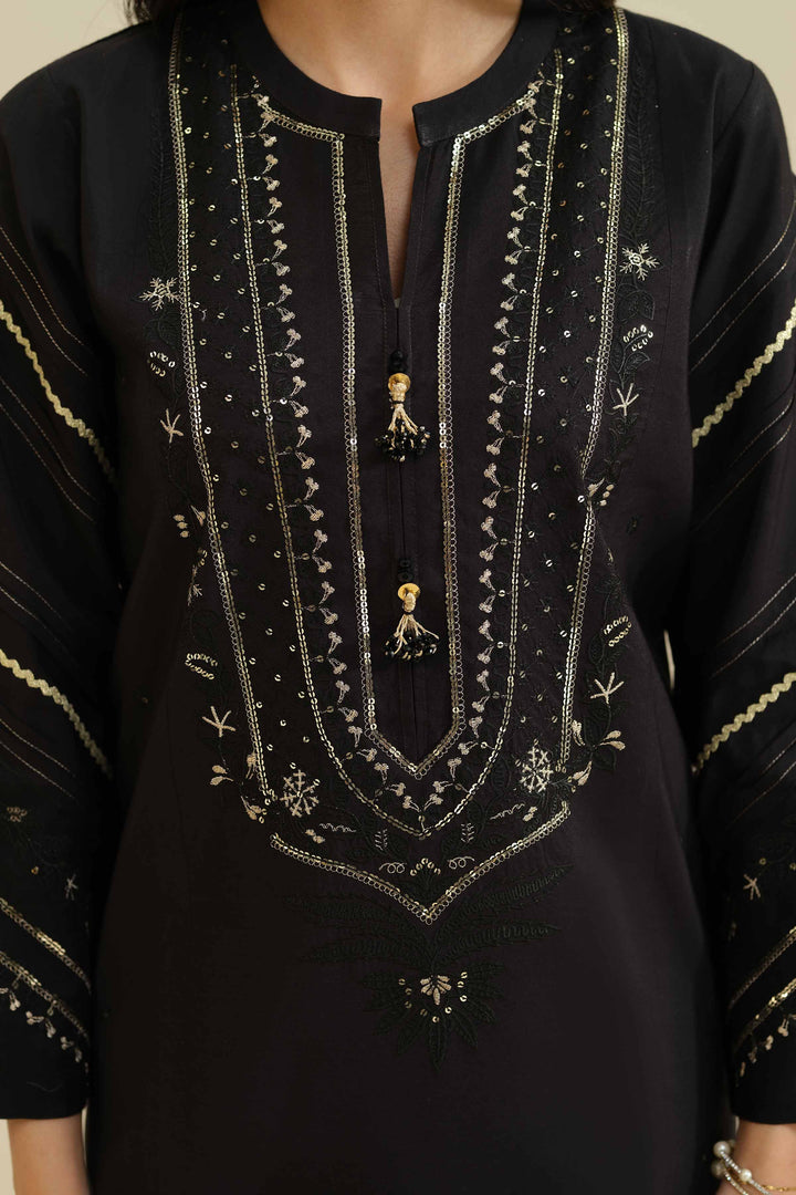Upgrade your festive look with this embroidered three-piece suit from the latest Pret Winter Collection, perfect for classic elegance.
